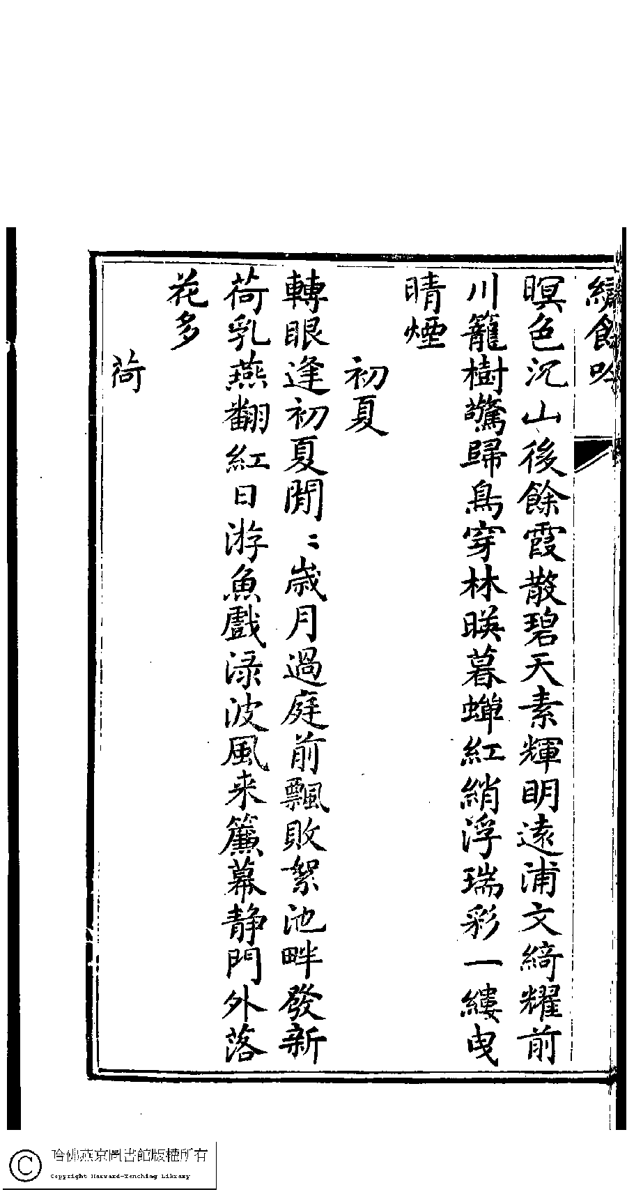 | 原書: 繡餘吟﹕六卷﹐附詩餘一卷(清馮思慧撰) |