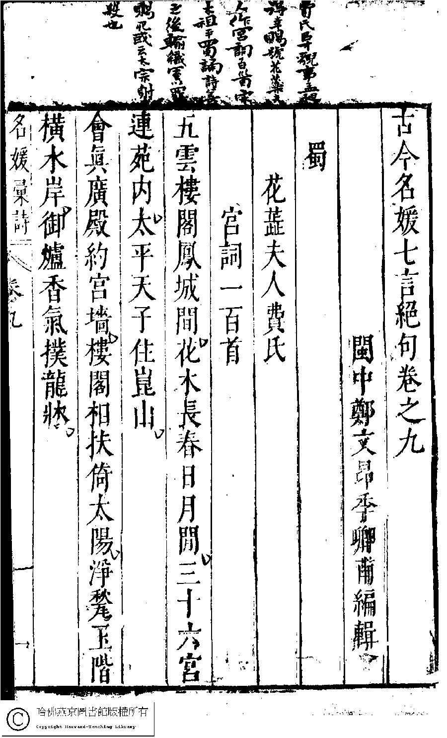 | 原書: 名媛彙詩﹕二十卷(明鄭文昂編) |