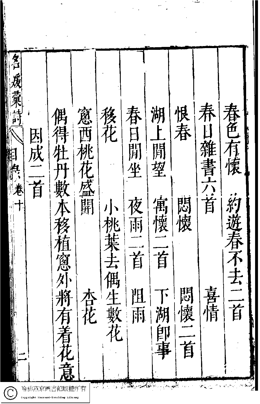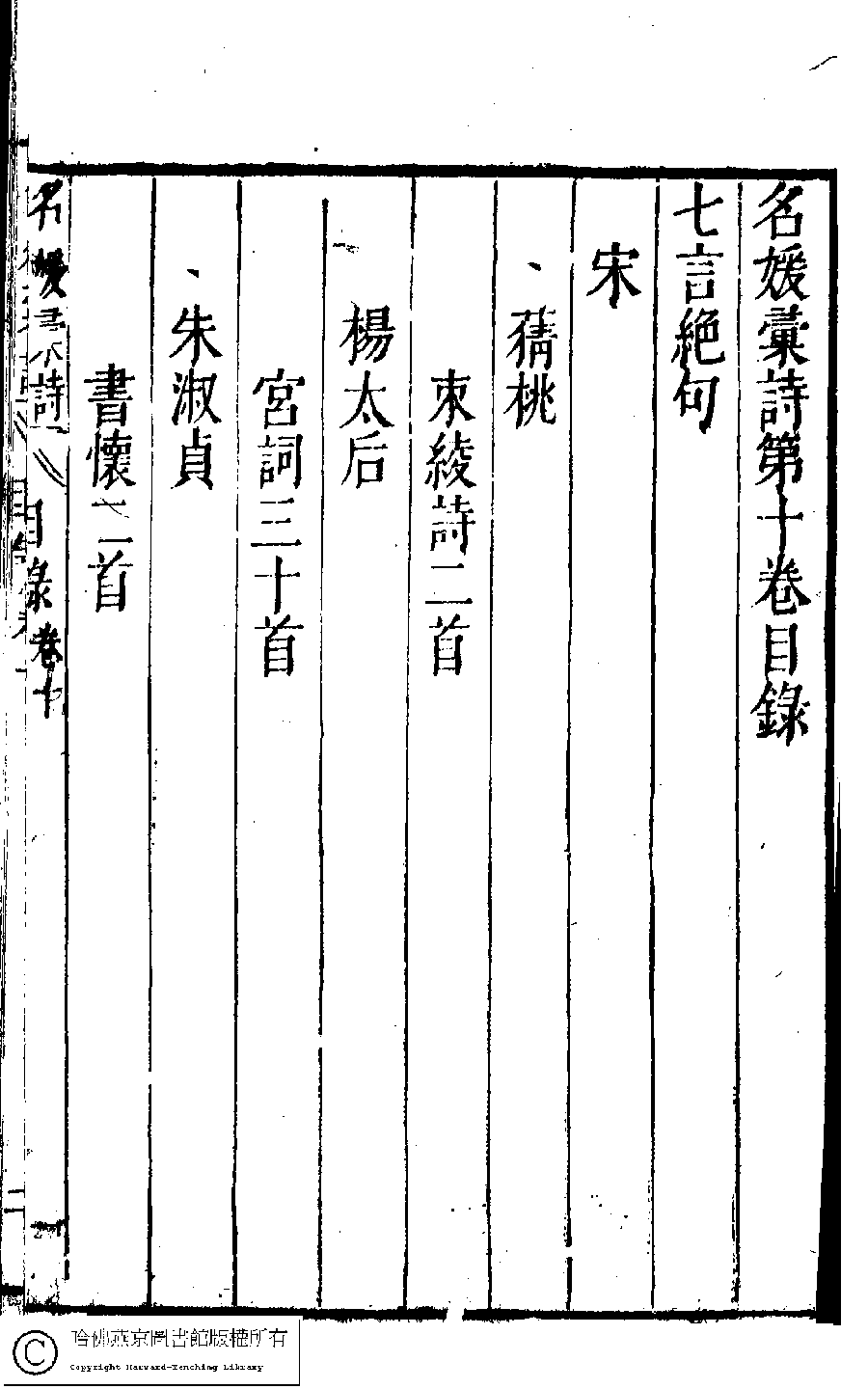 詩詞 [名媛彙詩第十卷目錄(七言絕句)]
