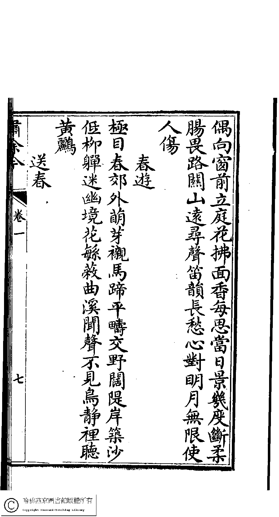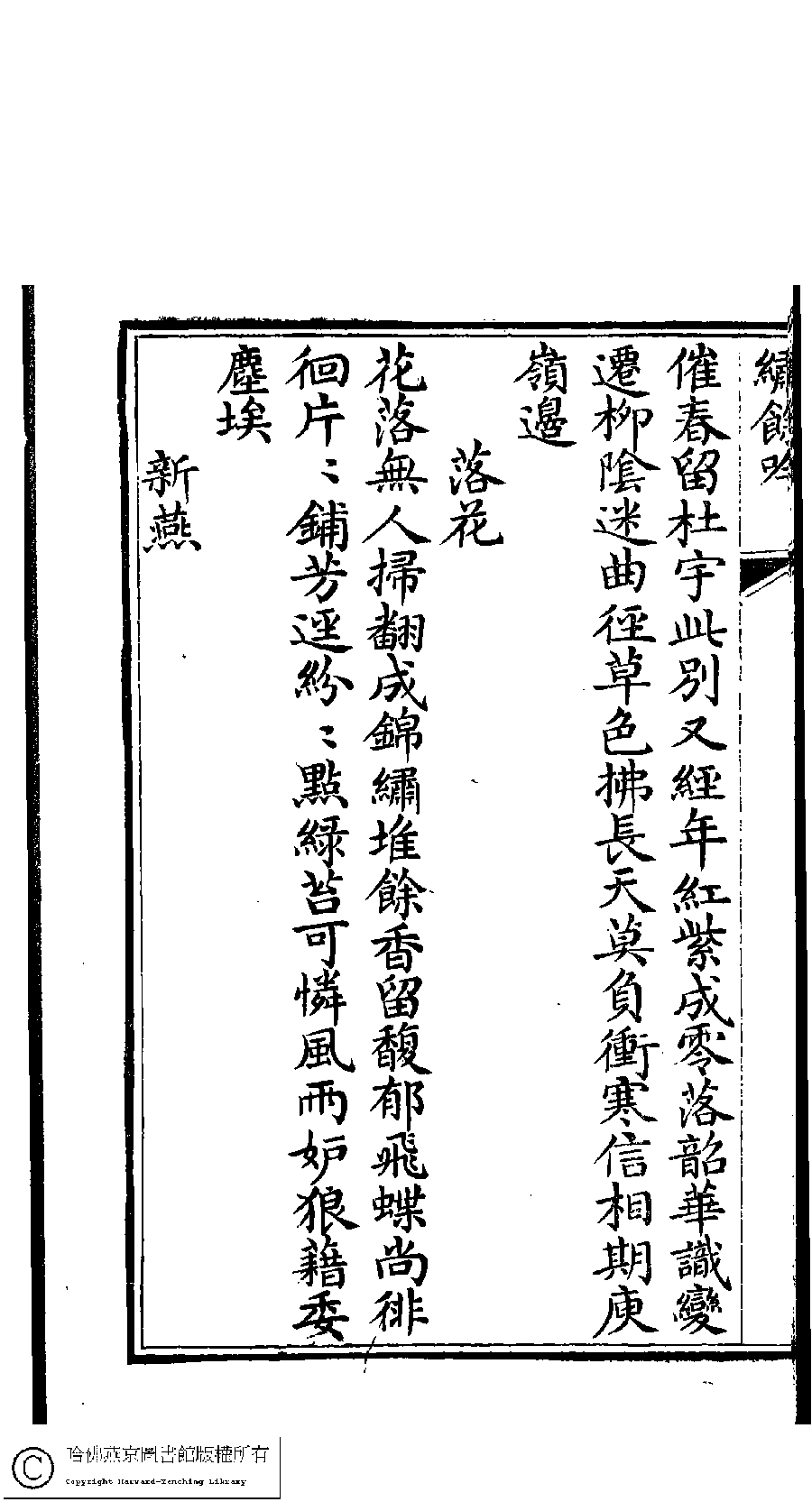 | 原書: 繡餘吟﹕六卷﹐附詩餘一卷(清馮思慧撰) |