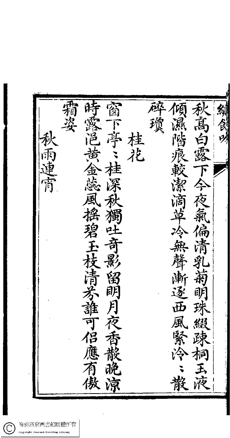| 原書: 繡餘吟﹕六卷﹐附詩餘一卷(清馮思慧撰) |