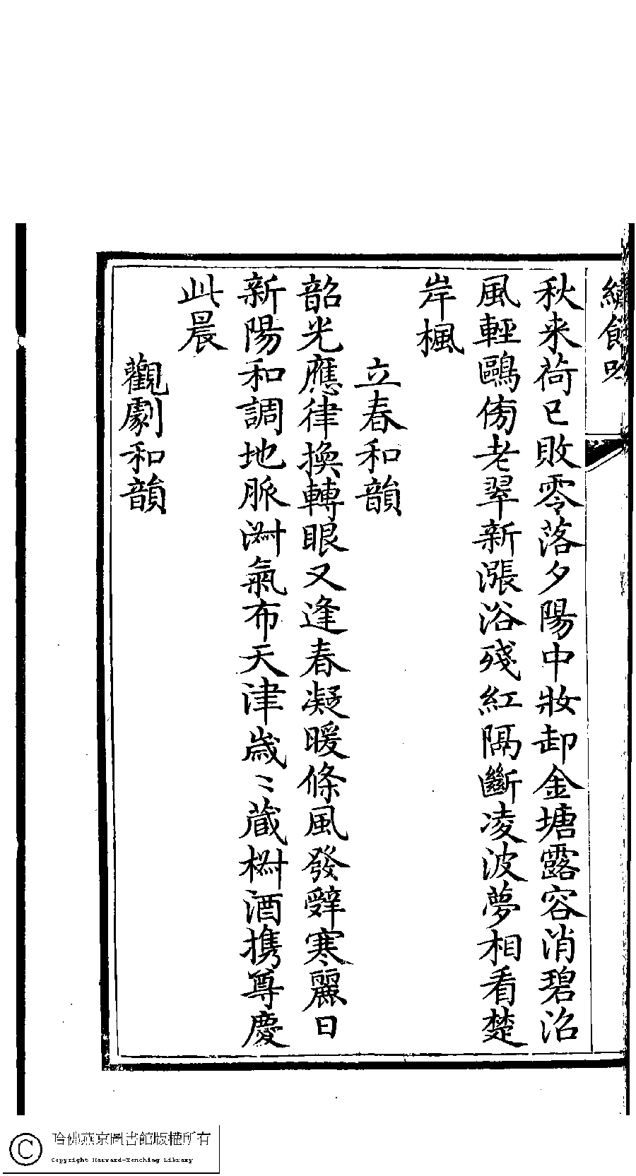 | 原書: 繡餘吟﹕六卷﹐附詩餘一卷(清馮思慧撰) |