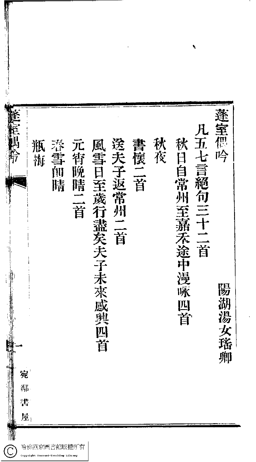 | 原書: 蓬室偶吟﹕一卷(清湯瑤卿撰) |