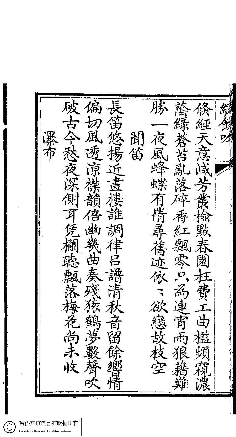 | 原書: 繡餘吟﹕六卷﹐附詩餘一卷(清馮思慧撰) |