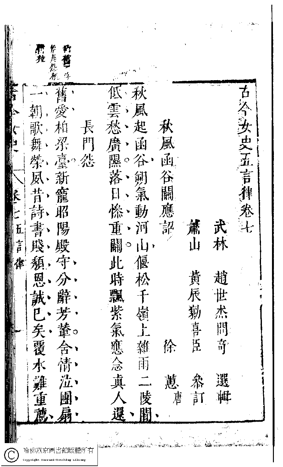 | 原書: 古今女史﹕十二卷﹐詩集﹕八卷﹐附姓氏字里詳節﹕一卷(明趙世杰輯) |