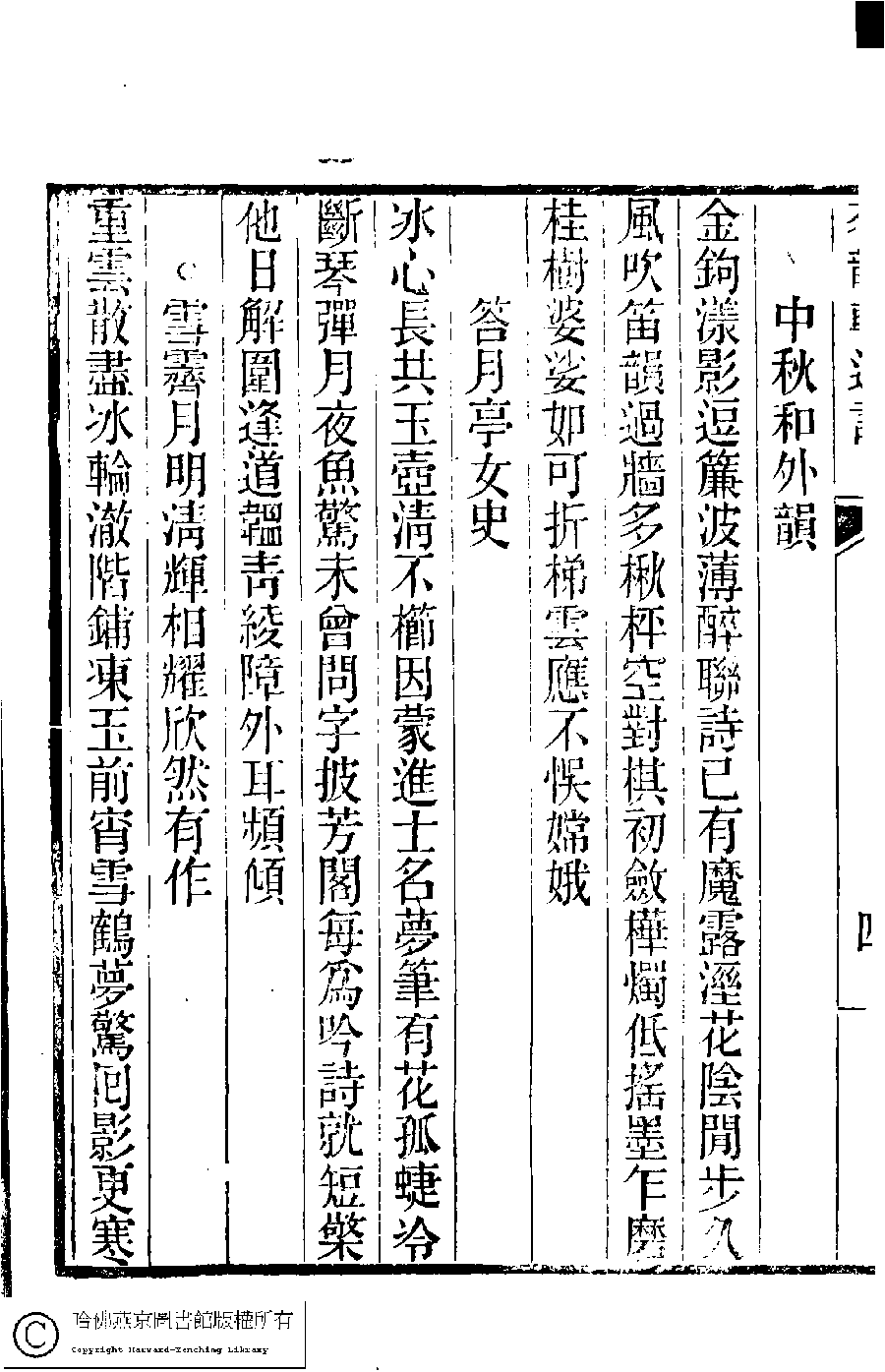 | (PRINT FRIENDLY VERSION) 茗韻軒遺詩﹕一卷(清王甥植撰)。清同治四年(1865)紫琅寓館刻本。 ![]() 頁碼 : 5a | 点 击 放 大 | 茗韻軒遺詩﹕一卷(清王甥植撰)。清同治四年(1865)紫琅寓館刻本。![]() 頁碼 : 4b | 点 击 放 大 | 返回 |