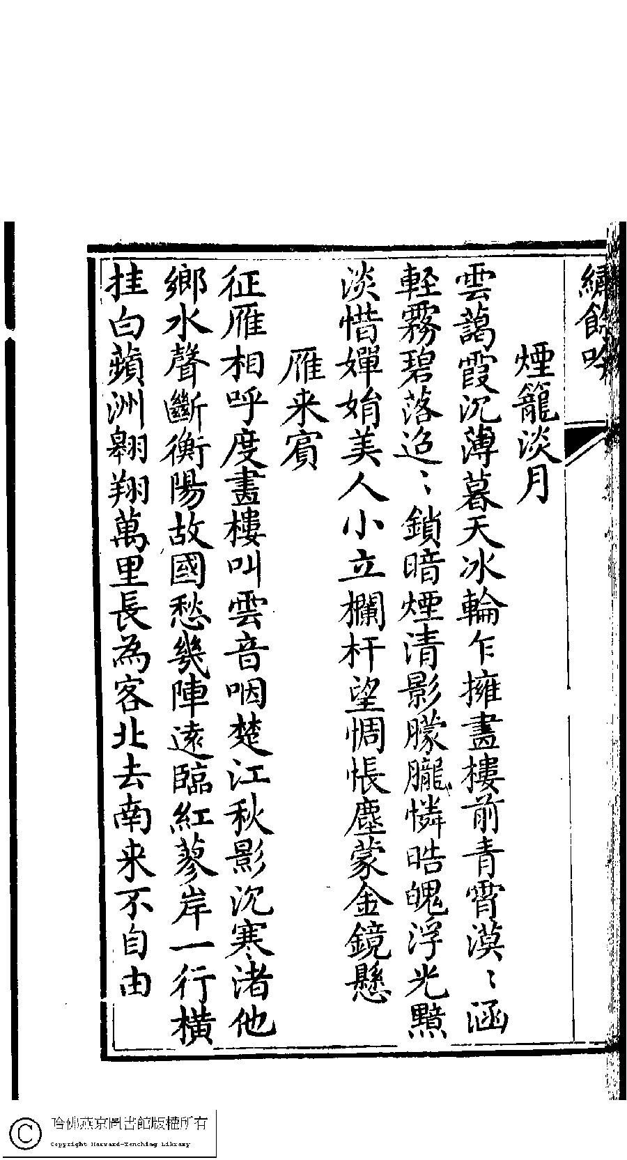 | 原書: 繡餘吟﹕六卷﹐附詩餘一卷(清馮思慧撰) |