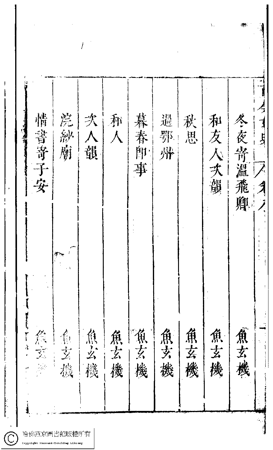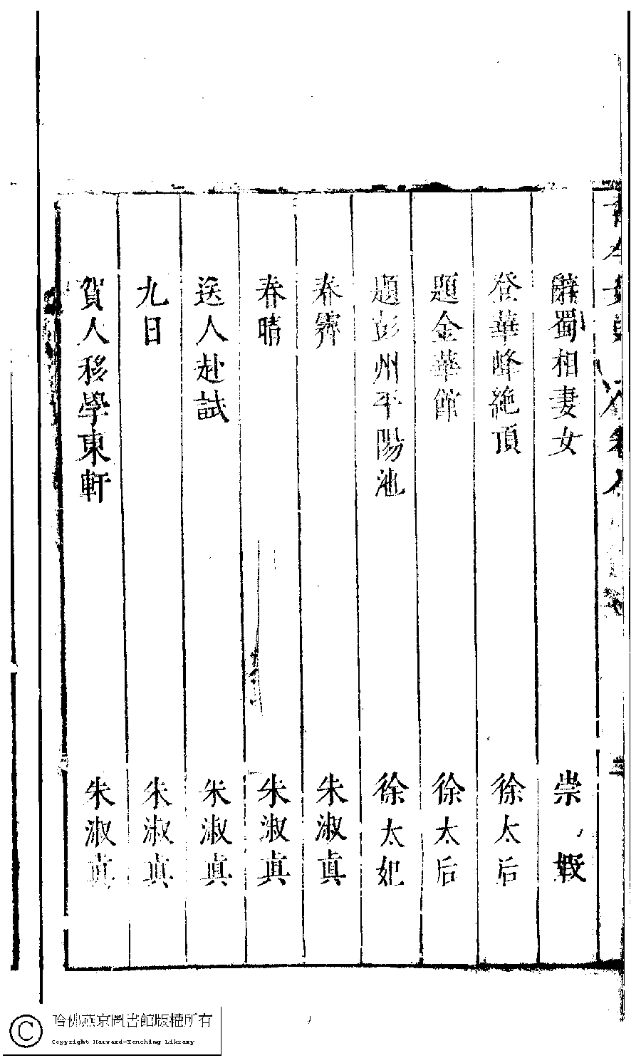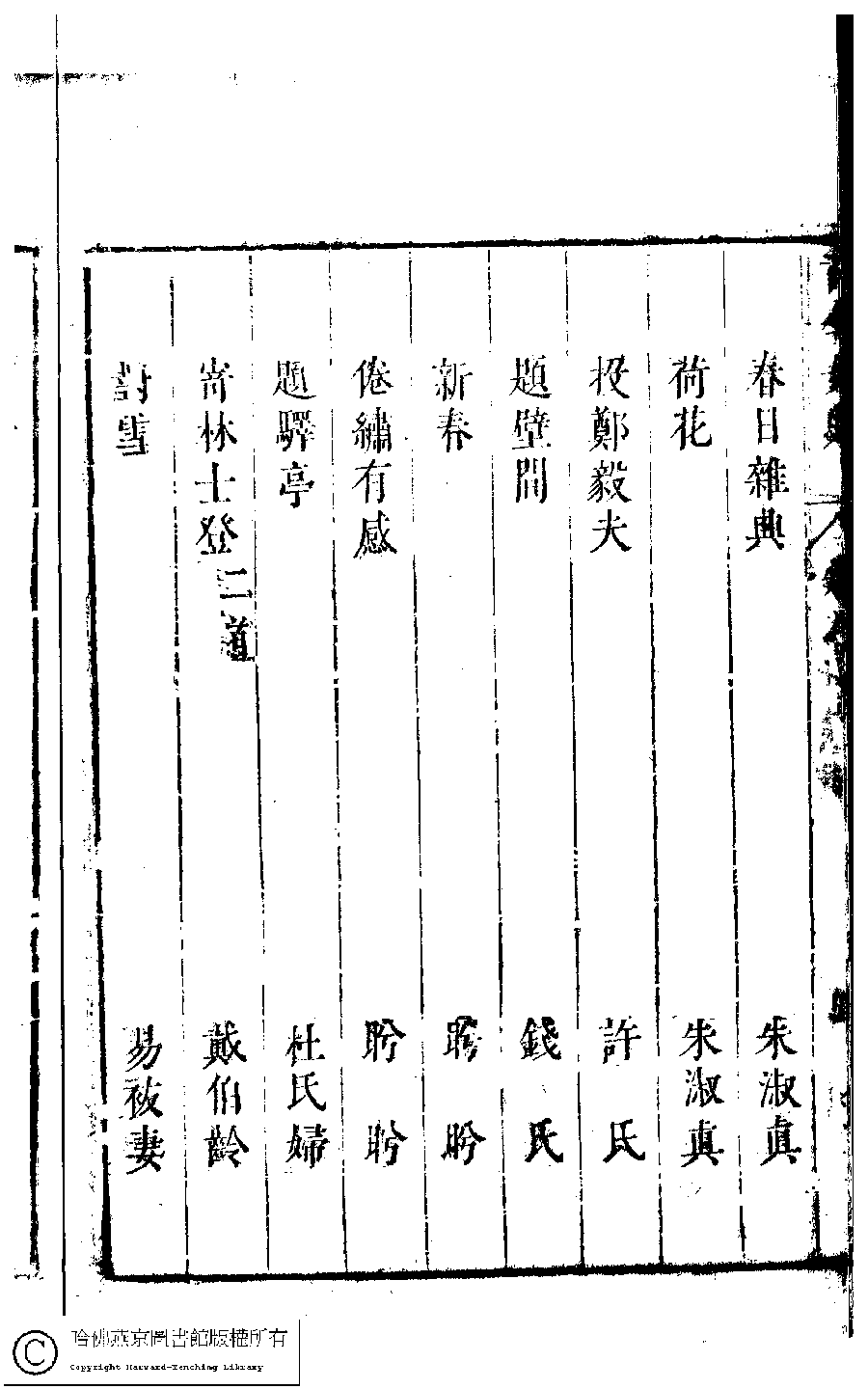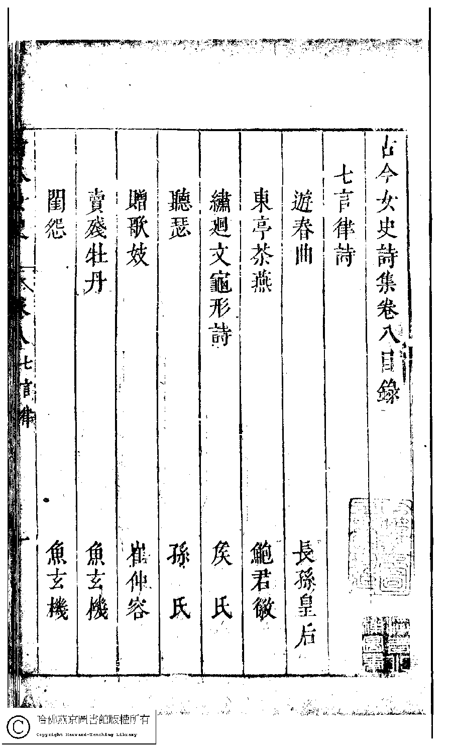 詩詞 [古今女史詩集卷八目錄]