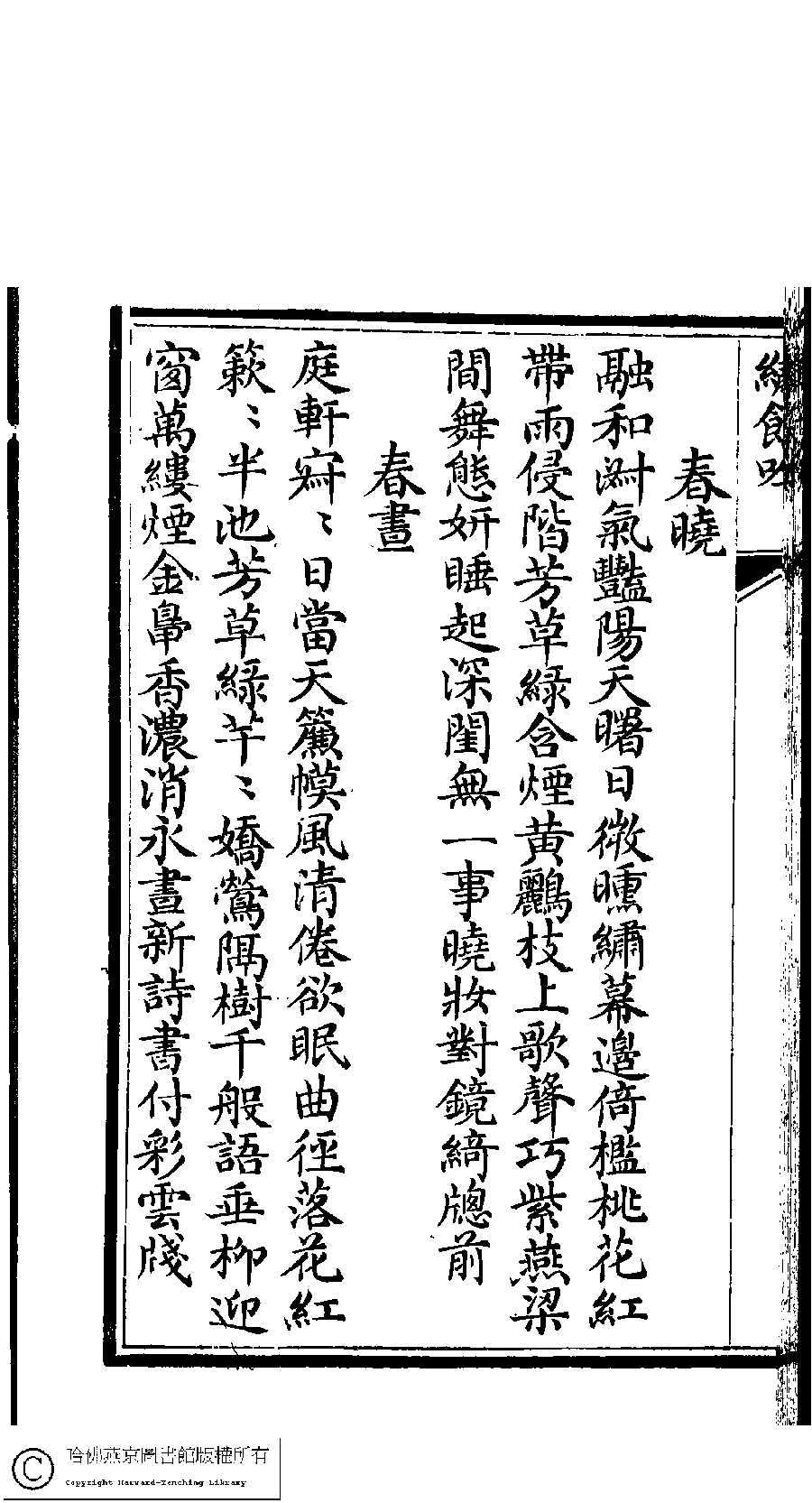 | 原書: 繡餘吟﹕六卷﹐附詩餘一卷(清馮思慧撰) |