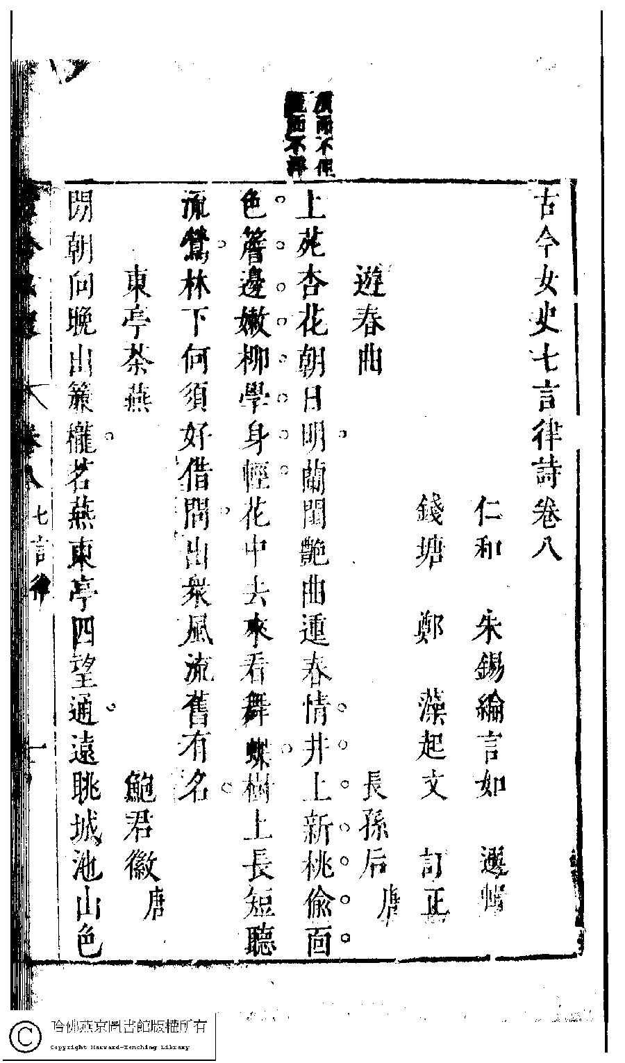 | 原書: 古今女史﹕十二卷﹐詩集﹕八卷﹐附姓氏字里詳節﹕一卷(明趙世杰輯) |