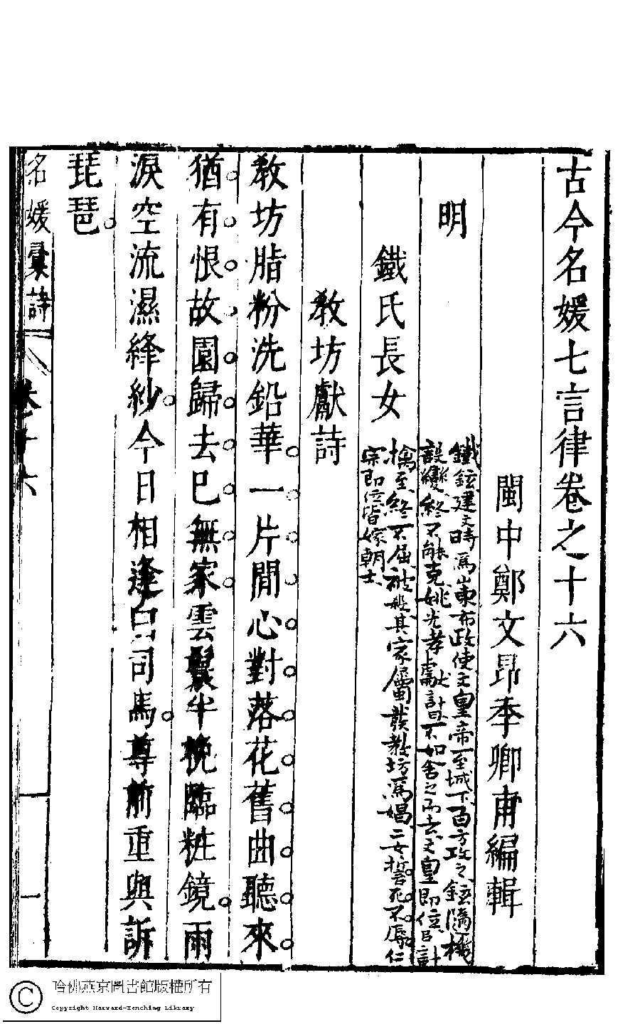 名媛彙詩﹕二十卷(明鄭文昂編)