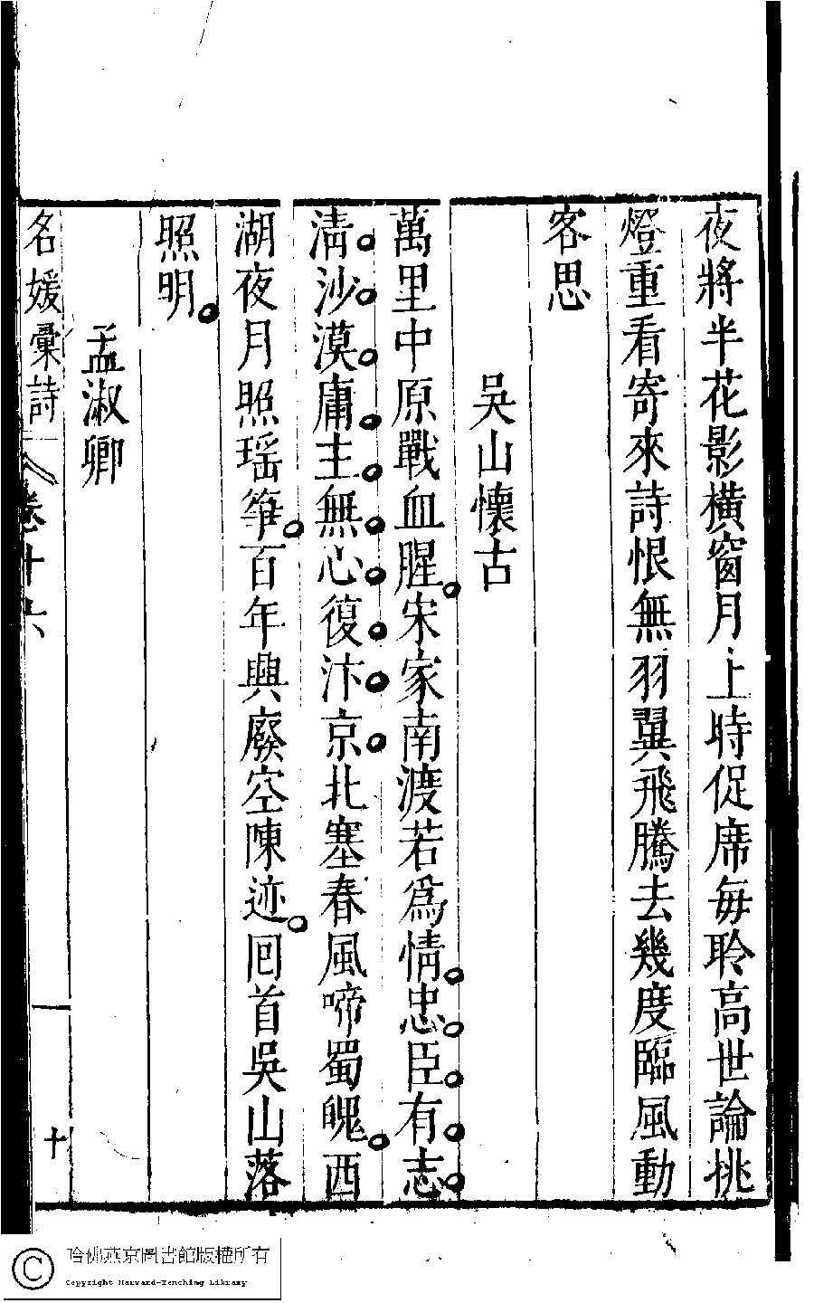 | (PRINT FRIENDLY VERSION) 名媛彙詩﹕二十卷(明鄭文昂編)。張正岳明泰昌元年(1620)刻本。 ![]() 頁碼 : 16.10a | 点 击 放 大 | 返回 |