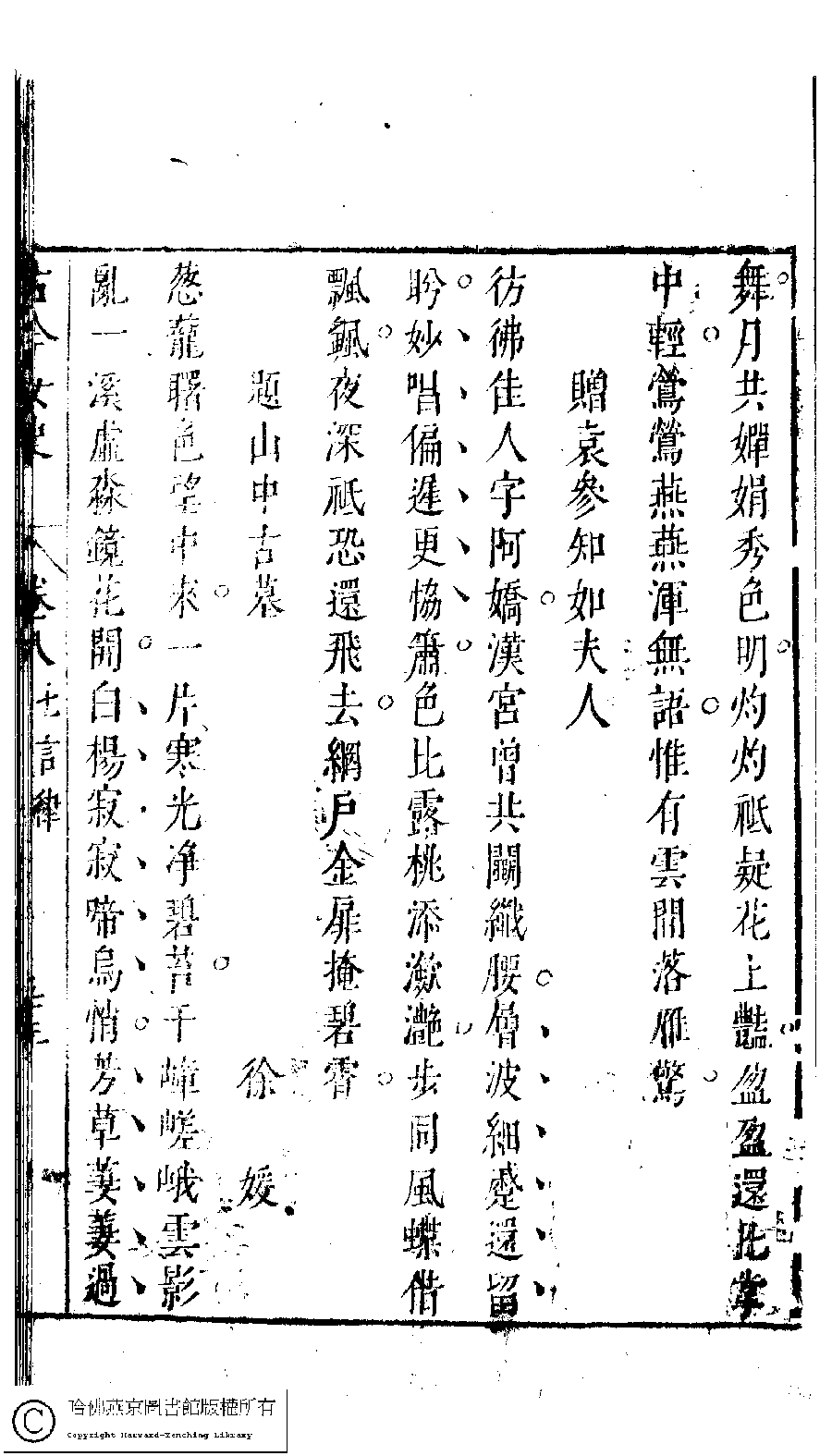 | 原書: 古今女史﹕十二卷﹐詩集﹕八卷﹐附姓氏字里詳節﹕一卷(明趙世杰輯) |