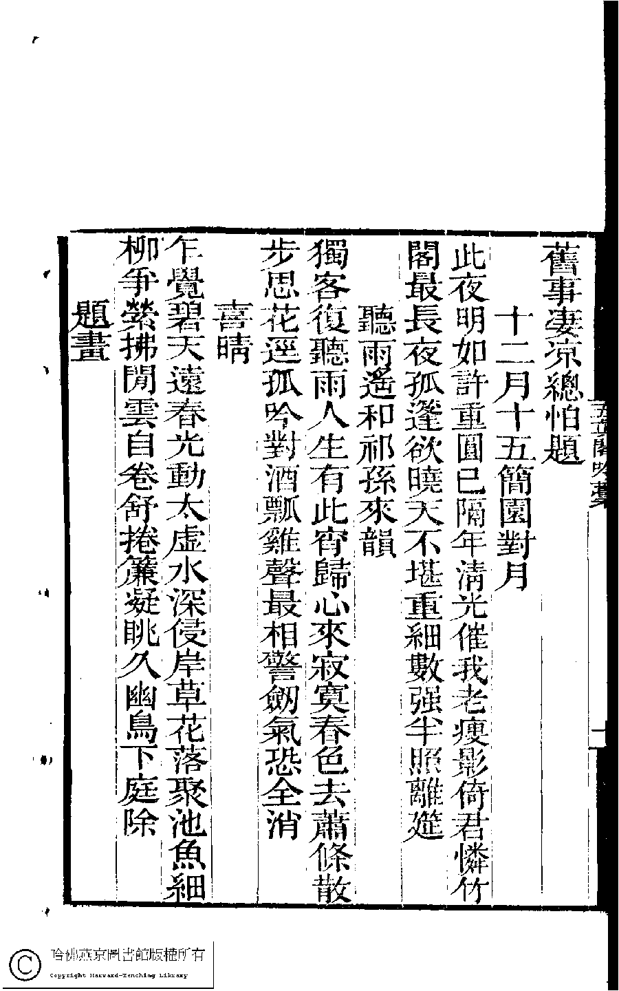 | (PRINT FRIENDLY VERSION) 五眞閣吟稿(清錢惠尊撰)。清光緖四年(1878)合肥學社刊本。 ![]() 頁碼 : 10b | 点 击 放 大 | 返回 |