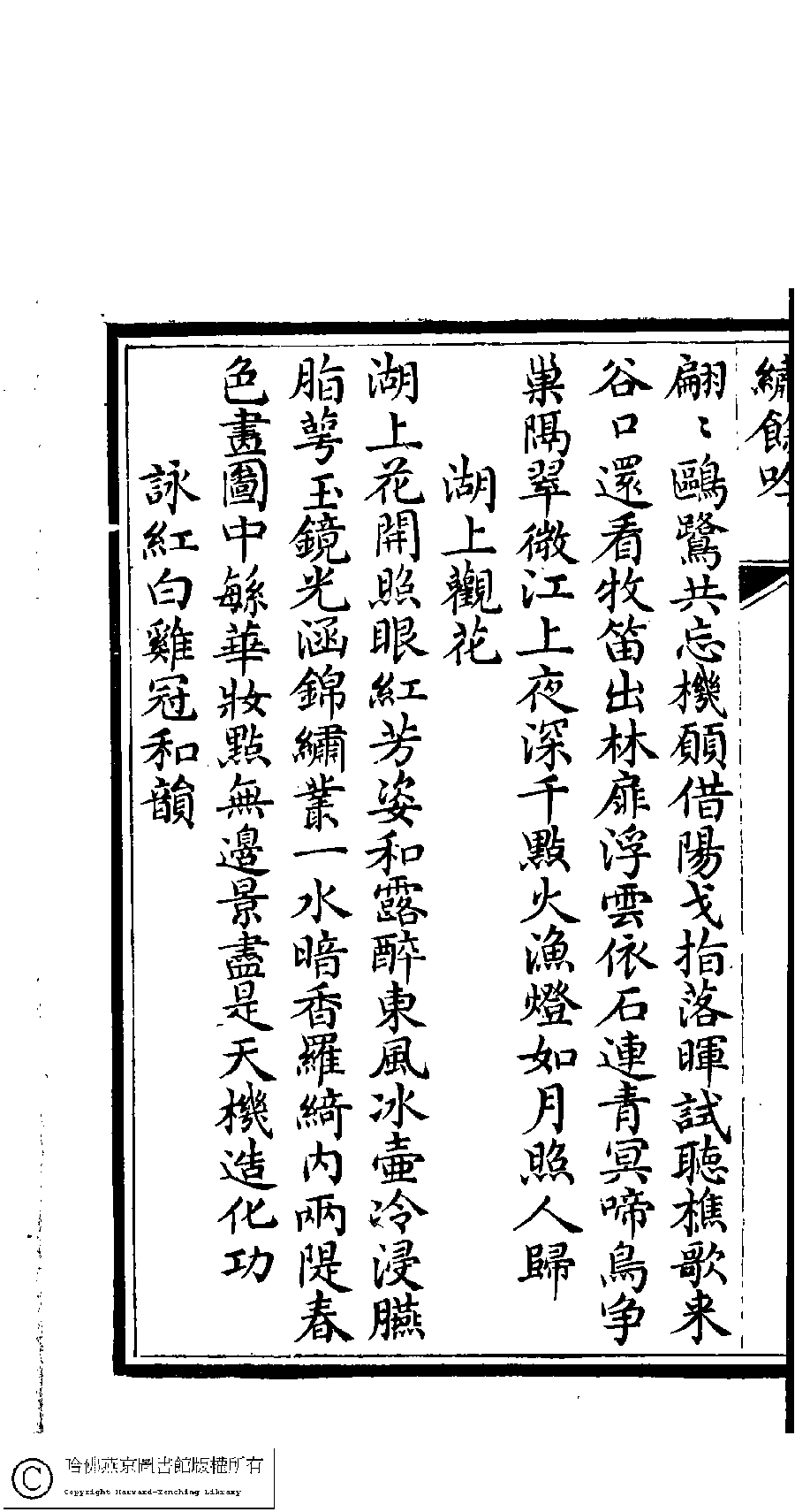 | 原書: 繡餘吟﹕六卷﹐附詩餘一卷(清馮思慧撰) |