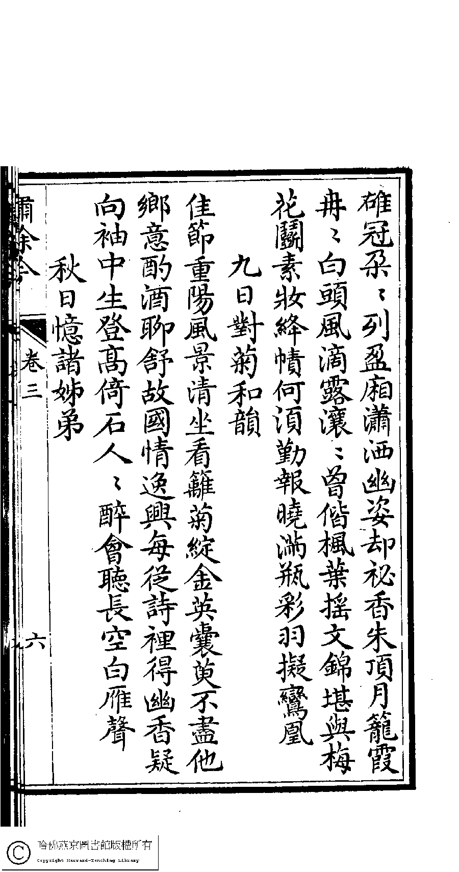 | 原書: 繡餘吟﹕六卷﹐附詩餘一卷(清馮思慧撰) |