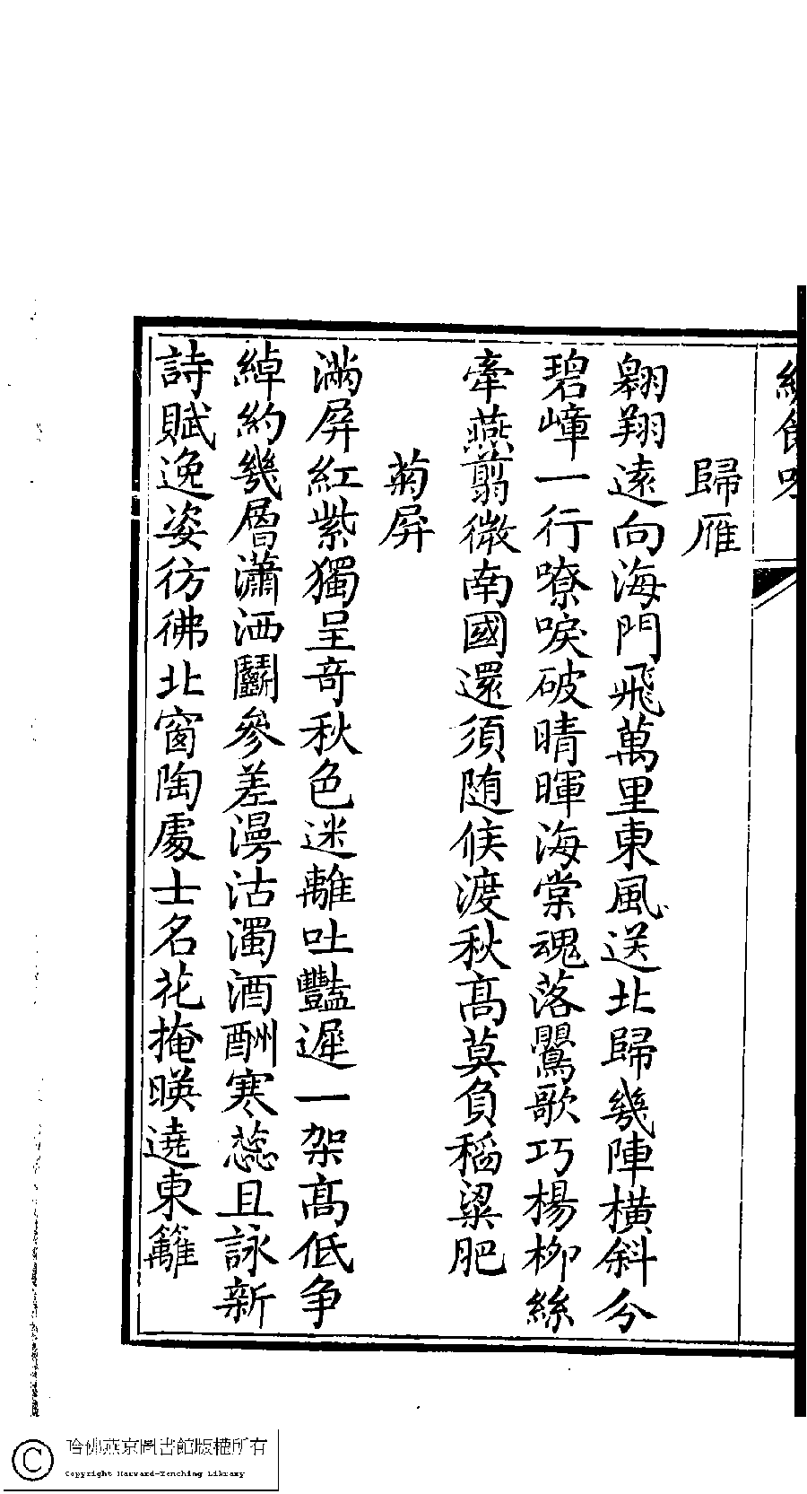 | 原書: 繡餘吟﹕六卷﹐附詩餘一卷(清馮思慧撰) |