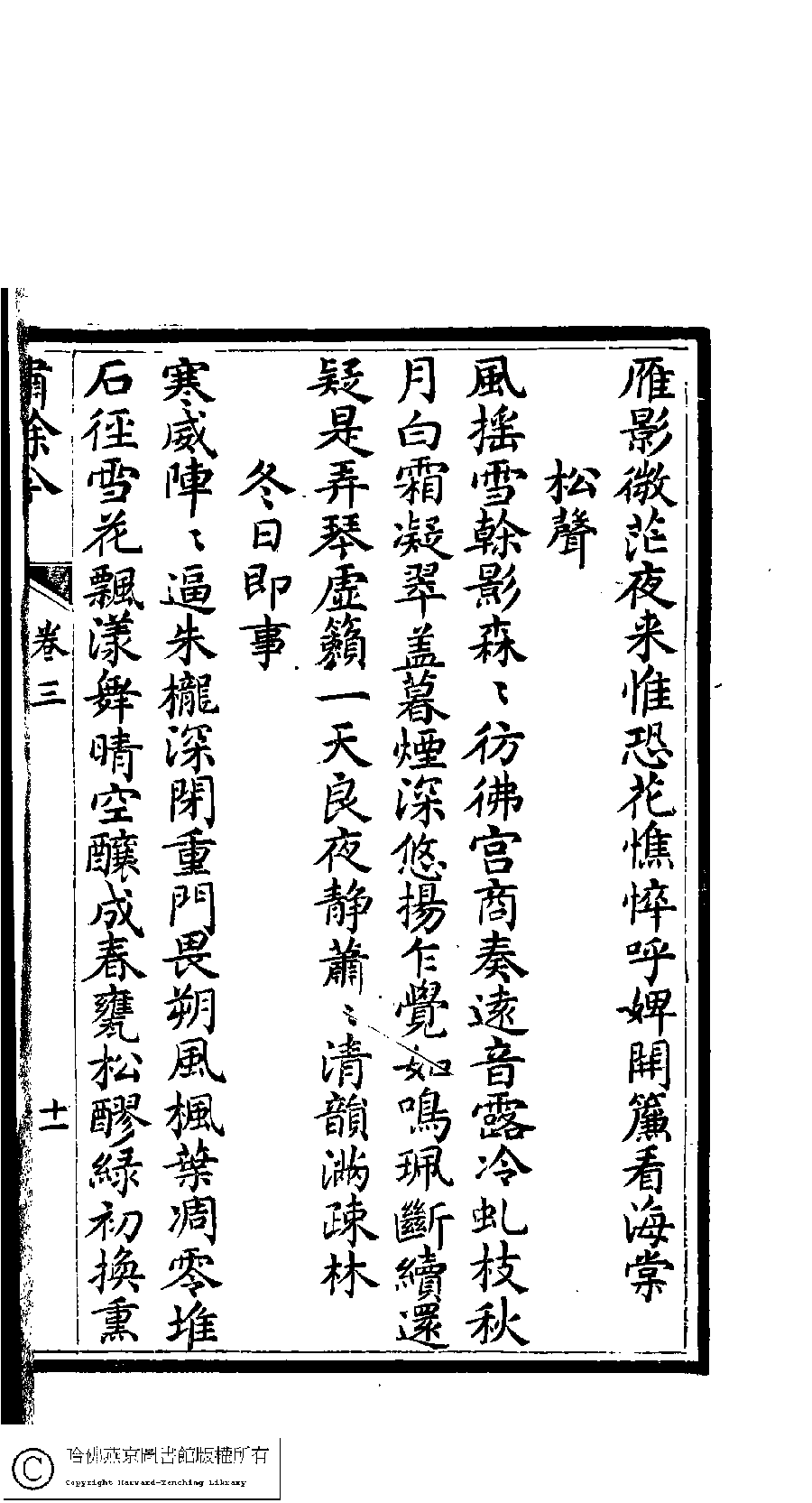| 原書: 繡餘吟﹕六卷﹐附詩餘一卷(清馮思慧撰) |