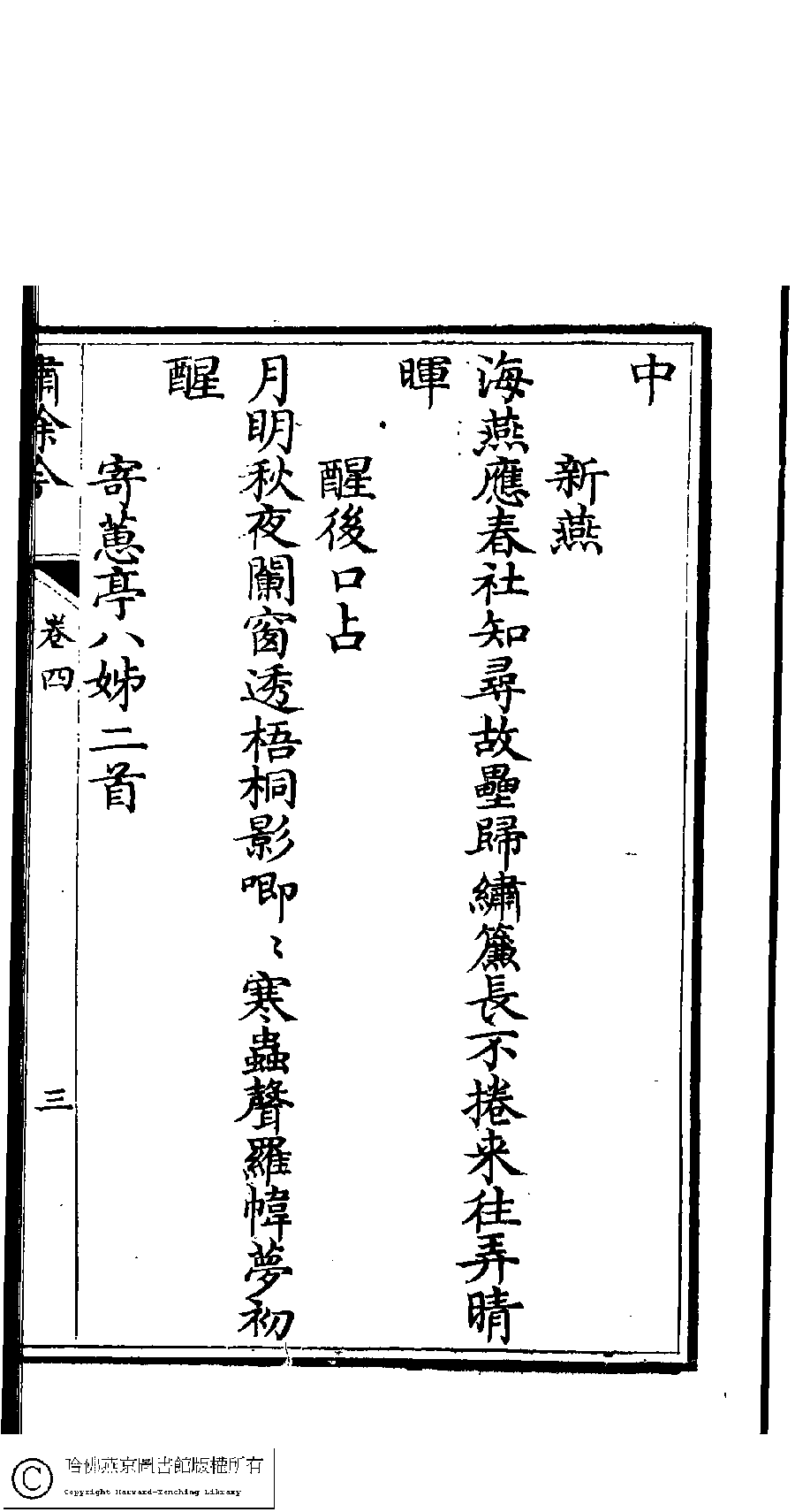 | 原書: 繡餘吟﹕六卷﹐附詩餘一卷(清馮思慧撰) |