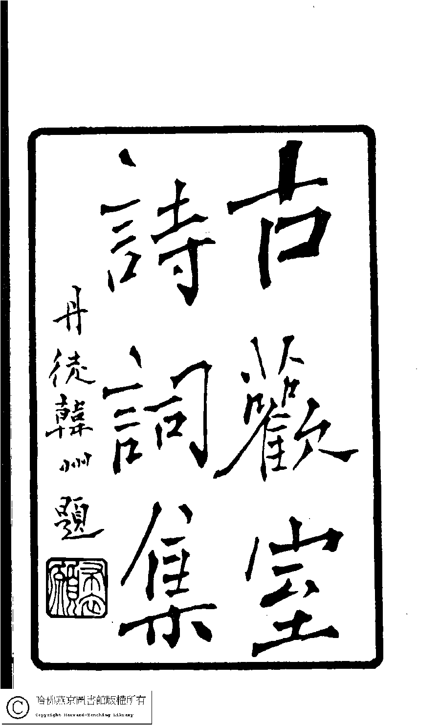 | 原書: 古歡室詩集:三卷﹐詞集﹕一卷(清曾懿撰) |