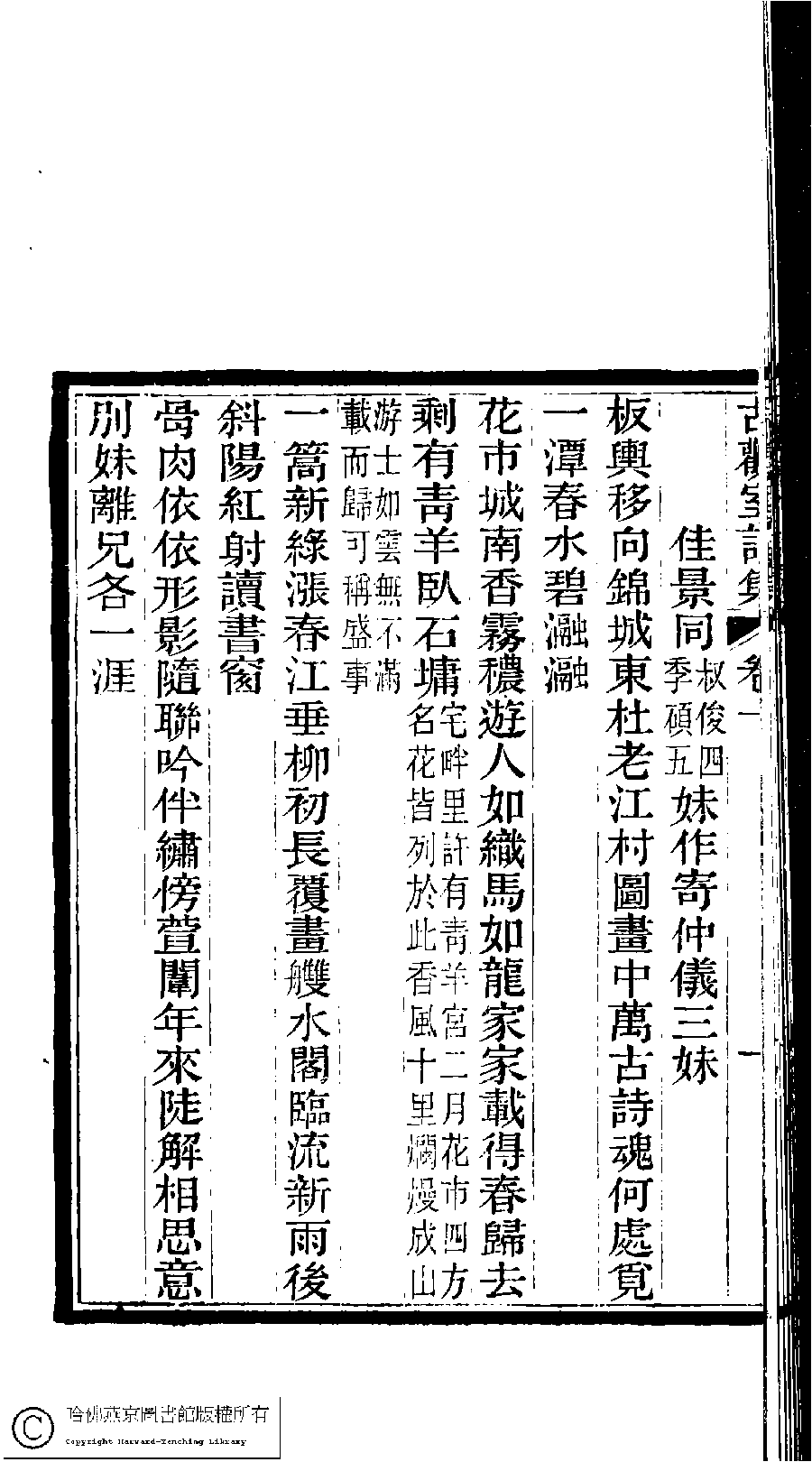 詩詞 [浣花草堂新營住宅山繞溪迴雜花翠竹好鳥嚶鳴石濑淙淙重閨靜逸偶擬三十韻以寫四時佳景同叔俊四妹季碩五妹作寄仲儀三妹]