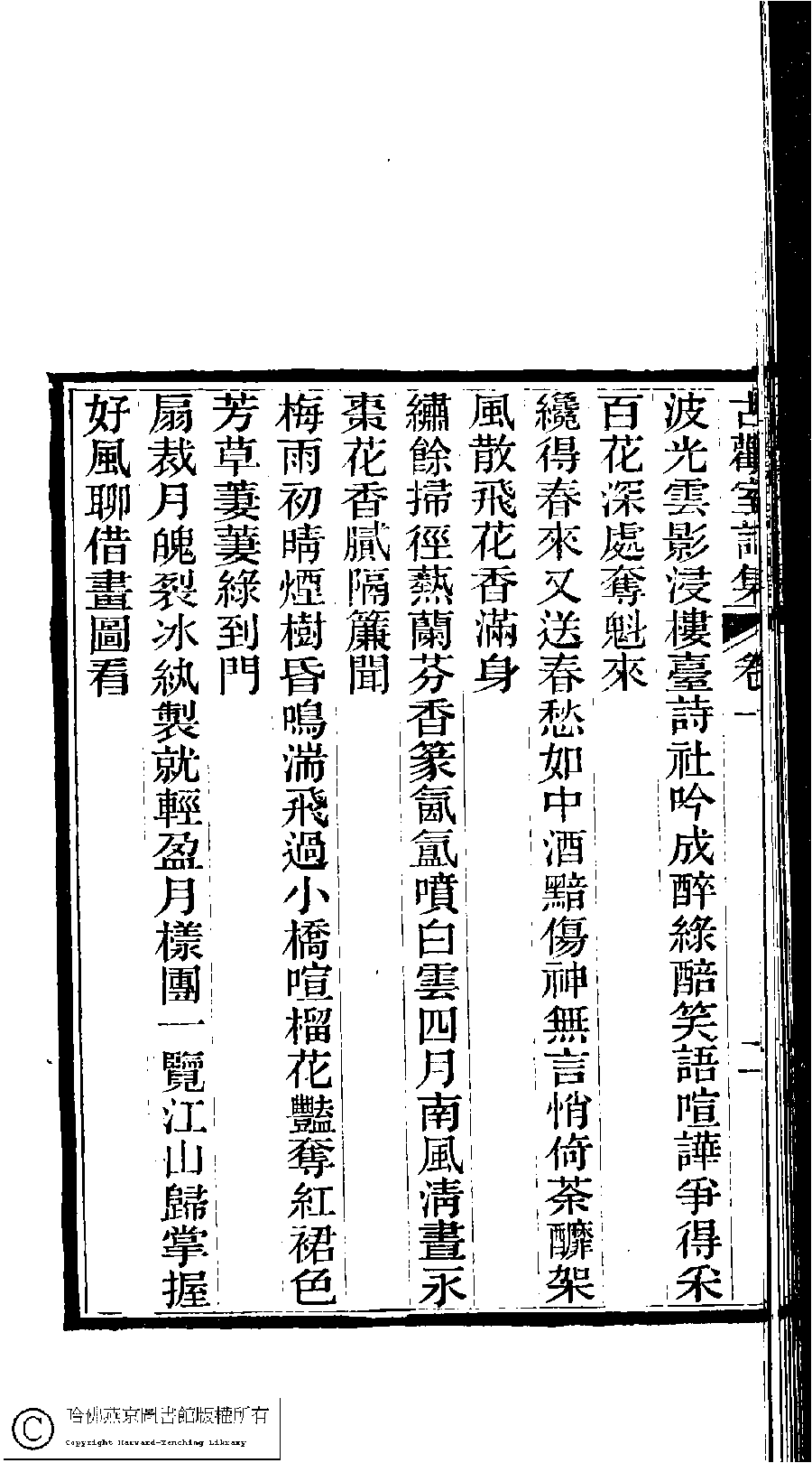 | (PRINT FRIENDLY VERSION) 古歡室詩集:三卷﹐詞集﹕一卷(清曾懿撰) ![]() 頁碼 : 1.2b | 点 击 放 大 | 古歡室詩集:三卷﹐詞集﹕一卷(清曾懿撰)![]() 頁碼 : 1.2a | 点 击 放 大 | 古歡室詩集:三卷﹐詞集﹕一卷(清曾懿撰)![]() 頁碼 : 1.1b | 点 击 放 大 | 古歡室詩集:三卷﹐詞集﹕一卷(清曾懿撰)![]() 頁碼 : 1.1a | 点 击 放 大 |