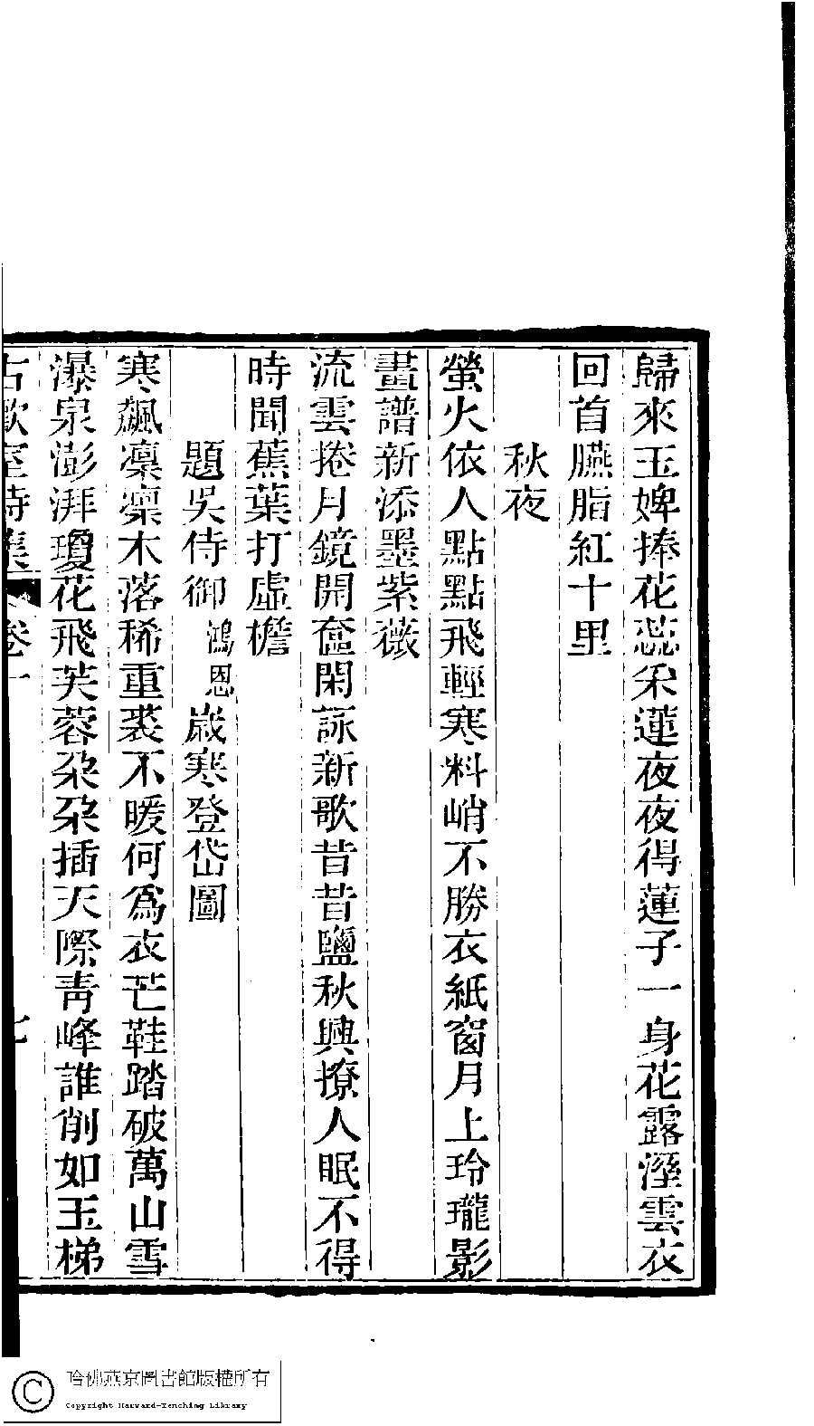 | (PRINT FRIENDLY VERSION) 古歡室詩集:三卷﹐詞集﹕一卷(清曾懿撰)。清光緖三十三年(1907)刻本。 ![]() 頁碼 : 1.7b | 点 击 放 大 | 古歡室詩集:三卷﹐詞集﹕一卷(清曾懿撰)。清光緖三十三年(1907)刻本。![]() 頁碼 : 1.7a | 点 击 放 大 | 返回 |