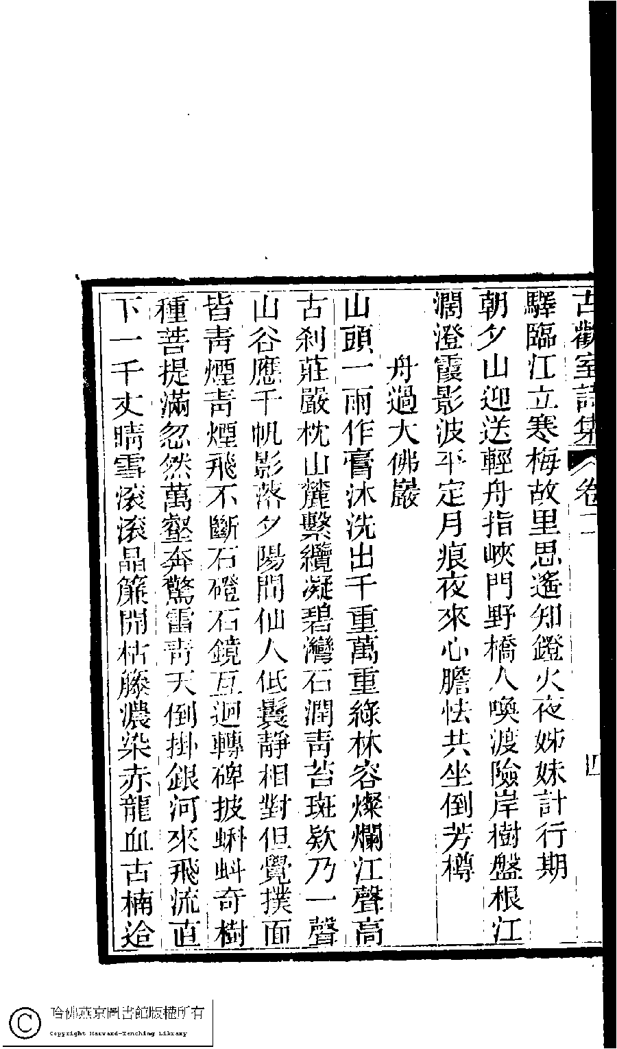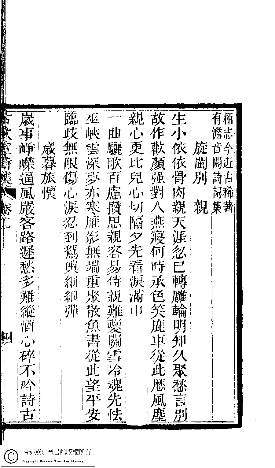 | (PRINT FRIENDLY VERSION) 古歡室詩集:三卷﹐詞集﹕一卷(清曾懿撰)。清光緖三十三年(1907)刻本。 ![]() 頁碼 : 2.4b | 点 击 放 大 | 古歡室詩集:三卷﹐詞集﹕一卷(清曾懿撰)。清光緖三十三年(1907)刻本。![]() 頁碼 : 2.4a | 点 击 放 大 | 返回 |