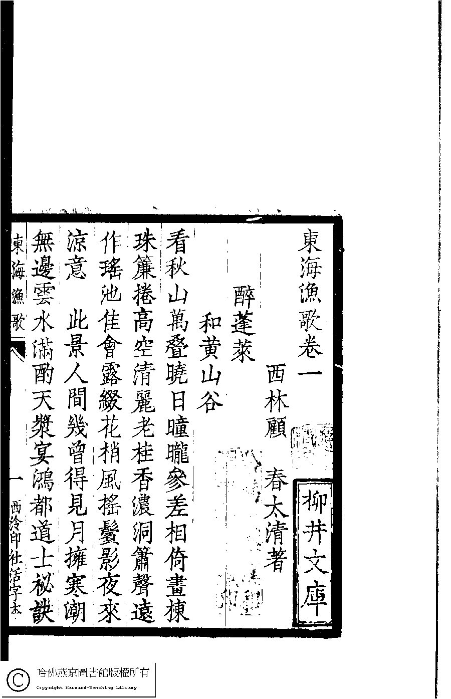 東海漁歌:四卷, 補遺:一卷(清顧春撰)