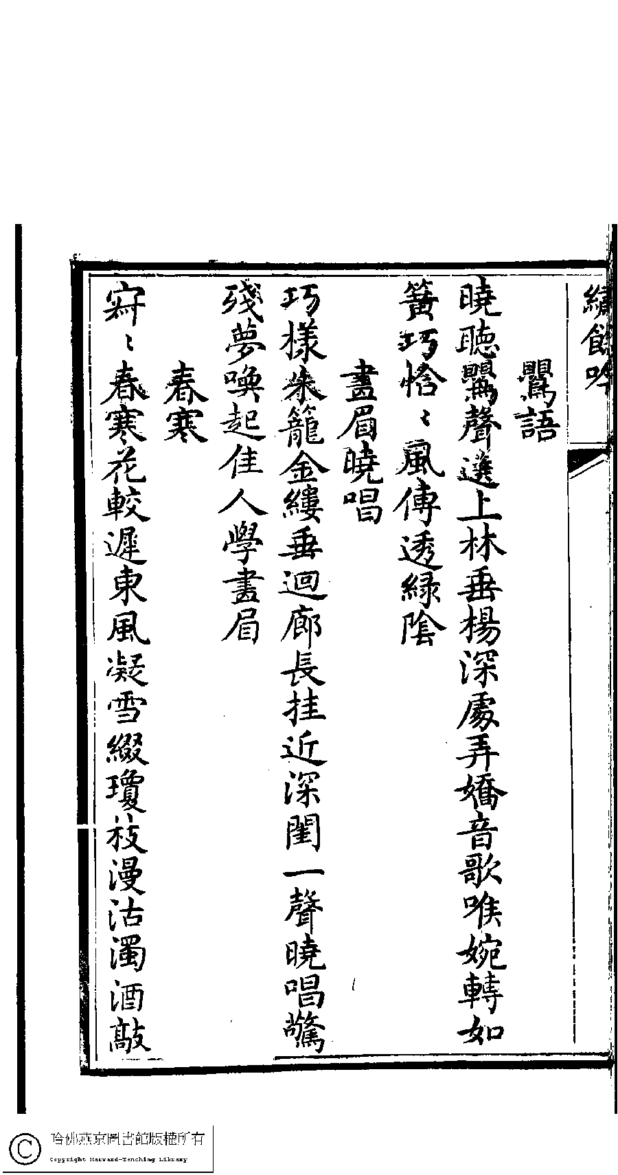 | 原書: 繡餘吟﹕六卷﹐附詩餘一卷(清馮思慧撰) |