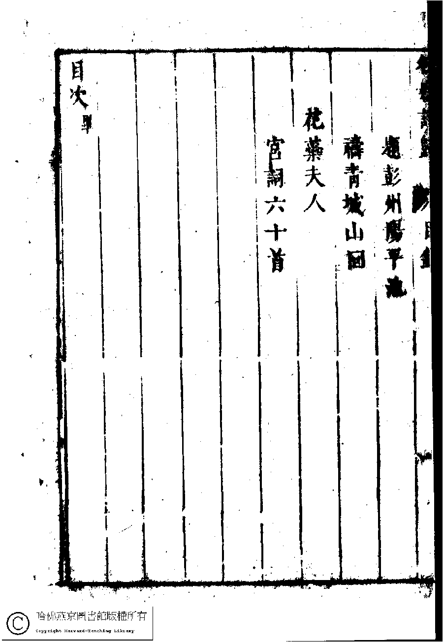| (PRINT FRIENDLY VERSION) 名媛詩歸﹕三十六卷(鍾惺點次)。明末(1621-1644)刻本 ![]() 頁碼 : 16.目錄.1b | 点 击 放 大 | 名媛詩歸﹕三十六卷(鍾惺點次)。明末(1621-1644)刻本![]() 頁碼 : 16.目錄.1a | 点 击 放 大 | 返回 |