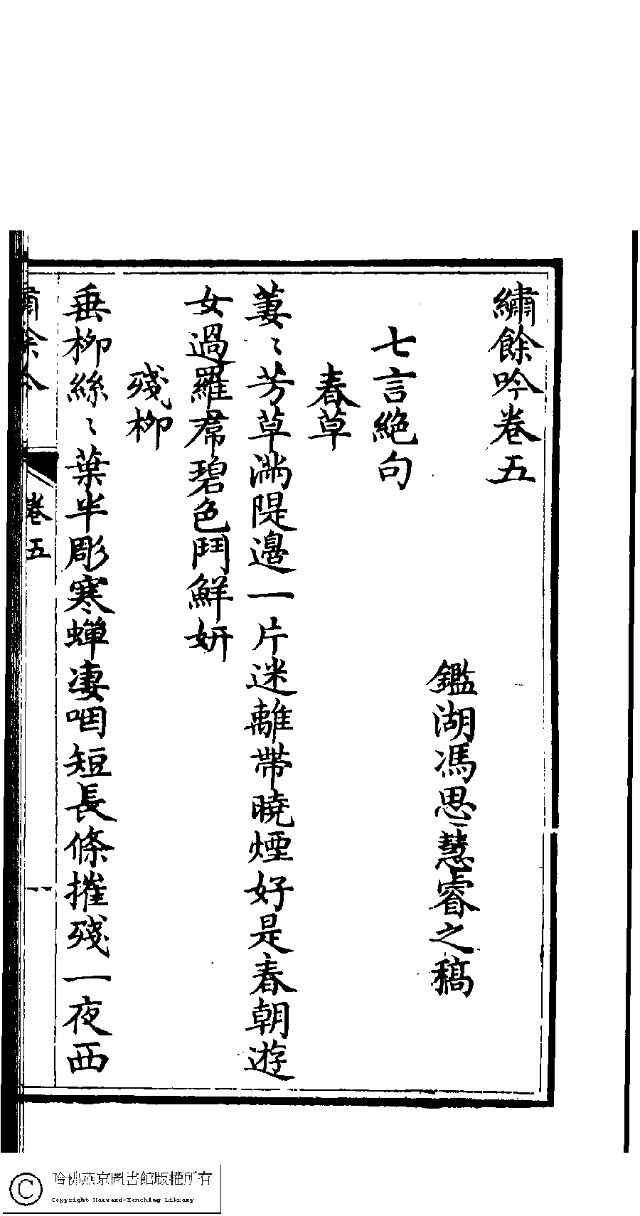 | 原書: 繡餘吟﹕六卷﹐附詩餘一卷(清馮思慧撰) |