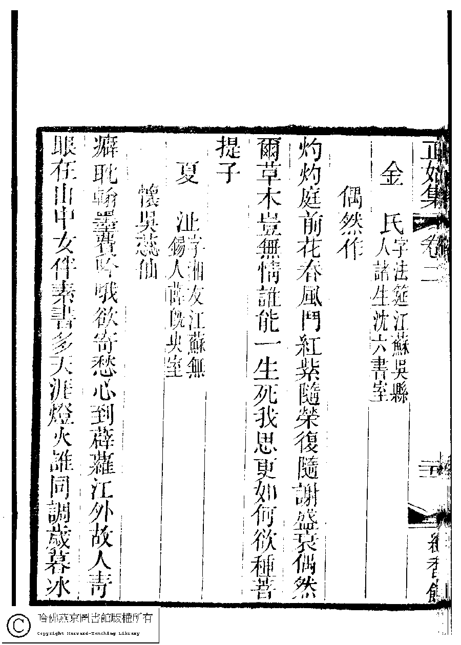 | 原書: 國朝閨秀正始集﹕二十卷﹐附錄﹕一卷﹐補遺﹕一卷﹐又附題詞﹕一卷(清惲珠輯) |