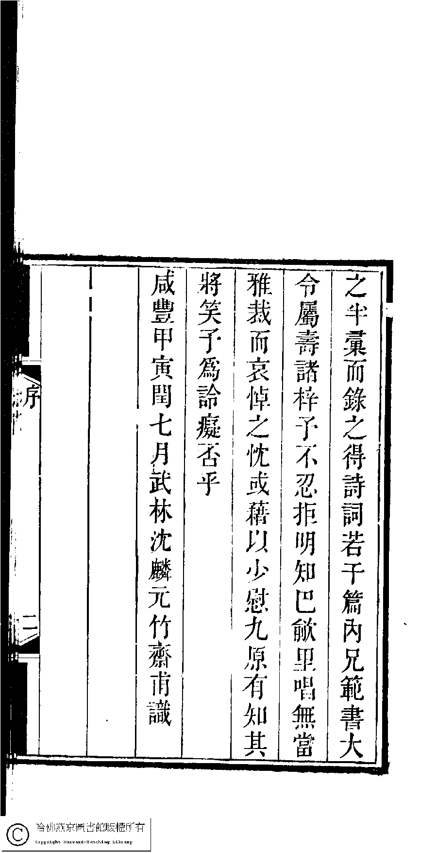 | (PRINT FRIENDLY VERSION) 慈暉館詩詞草(清阮恩灤撰)。清光緖元年(1875)據咸豐四年(1854)武林沈氏刋本補刋 ![]() 頁碼 : 序3.2b | 点 击 放 大 | 慈暉館詩詞草(清阮恩灤撰)。清光緖元年(1875)據咸豐四年(1854)武林沈氏刋本補刋![]() 頁碼 : 序3.2a | 点 击 放 大 | 慈暉館詩詞草(清阮恩灤撰)。清光緖元年(1875)據咸豐四年(1854)武林沈氏刋本補刋![]() 頁碼 : 序3.1b | 点 击 放 大 | 慈暉館詩詞草(清阮恩灤撰)。清光緖元年(1875)據咸豐四年(1854)武林沈氏刋本補刋![]() 頁碼 : 序3.1a | 点 击 放 大 | 返回 |