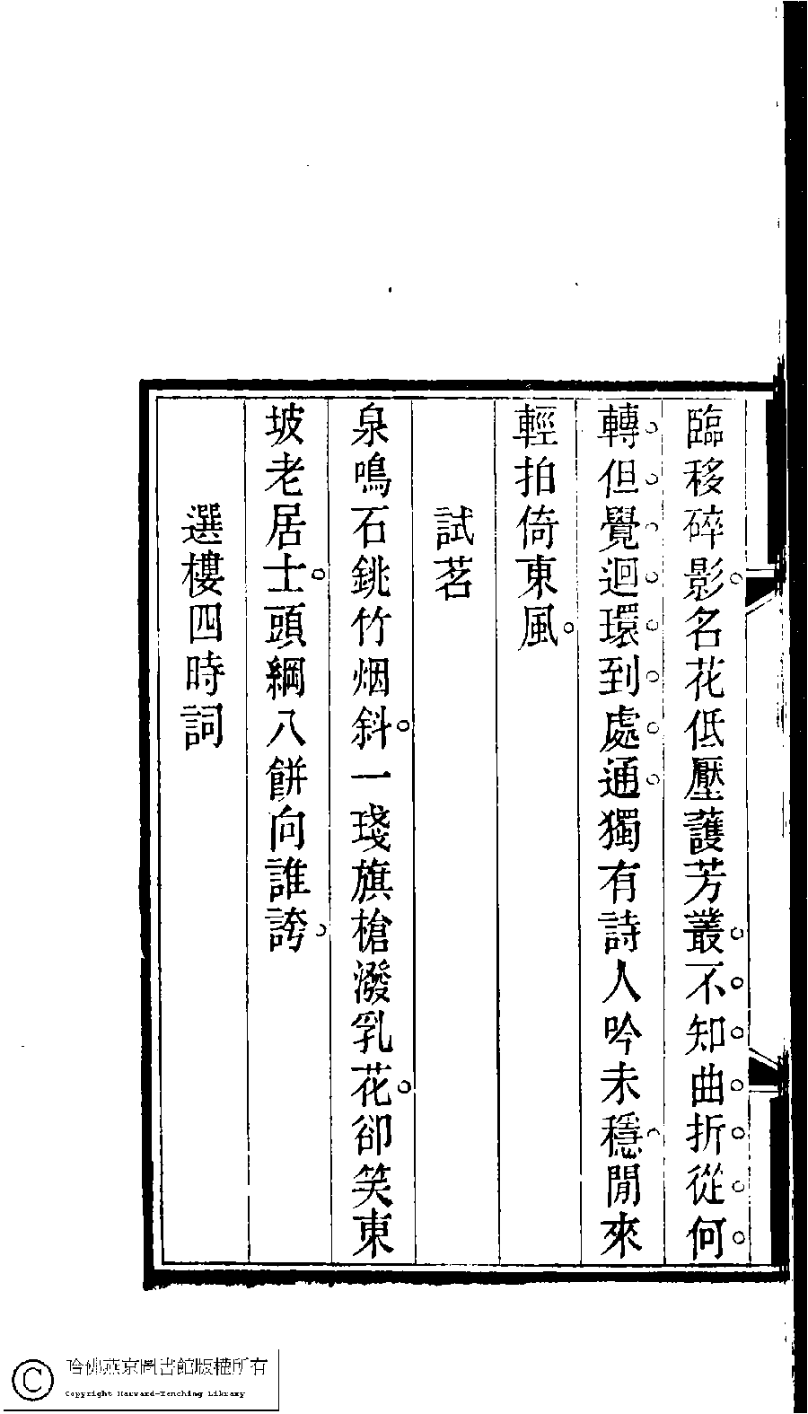 | (PRINT FRIENDLY VERSION) 慈暉館詩詞草(清阮恩灤撰)。清光緖元年(1875)據咸豐四年(1854)武林沈氏刋本補刋 ![]() 頁碼 : 詩草.4b | 点 击 放 大 | 慈暉館詩詞草(清阮恩灤撰)。清光緖元年(1875)據咸豐四年(1854)武林沈氏刋本補刋![]() 頁碼 : 詩草.4a | 点 击 放 大 | 返回 |