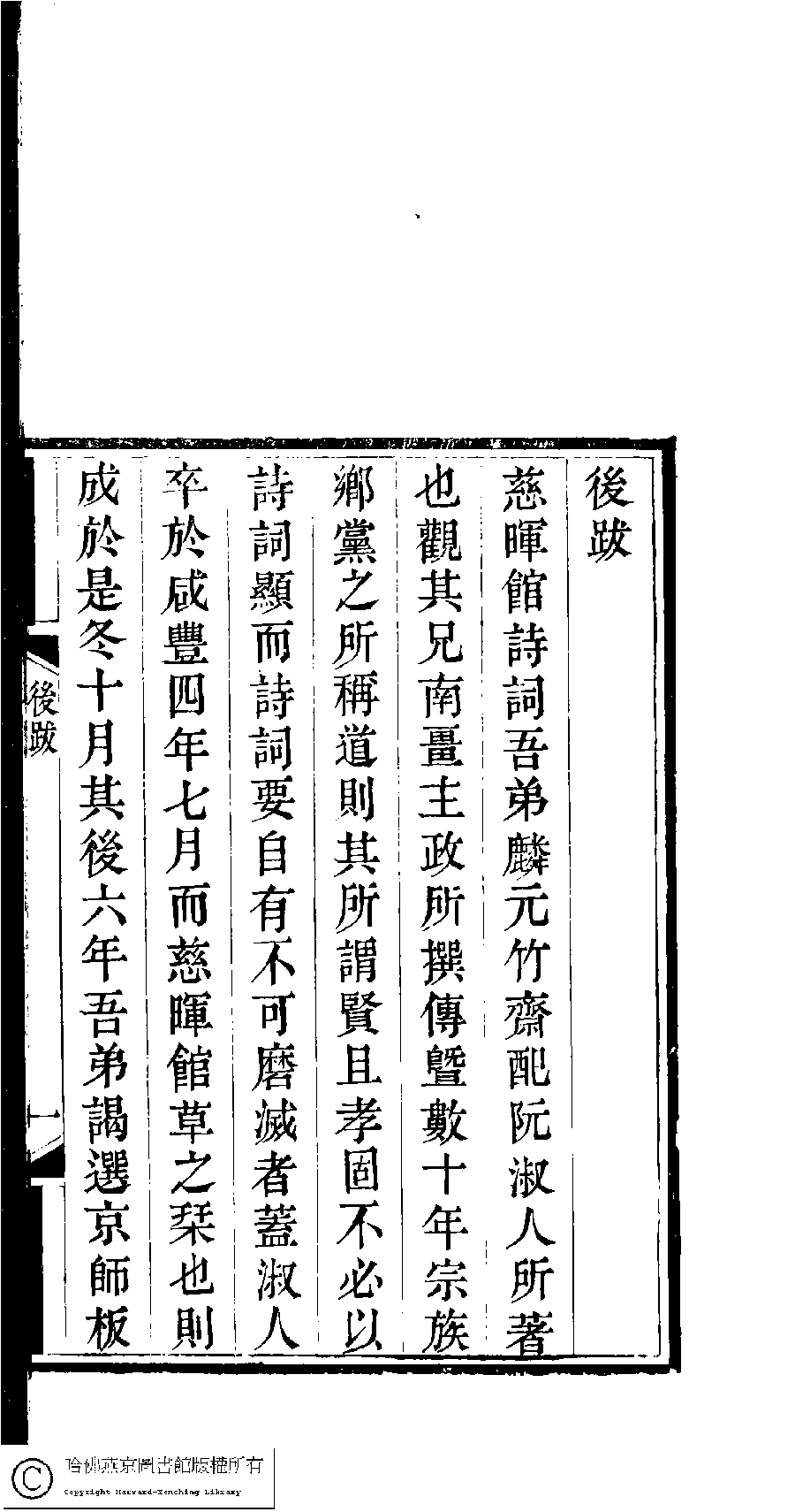 | (PRINT FRIENDLY VERSION) 慈暉館詩詞草(清阮恩灤撰)。清光緖元年(1875)據咸豐四年(1854)武林沈氏刋本補刋 ![]() 頁碼 : 跋.2b | 点 击 放 大 | 慈暉館詩詞草(清阮恩灤撰)。清光緖元年(1875)據咸豐四年(1854)武林沈氏刋本補刋![]() 頁碼 : 跋.2a | 点 击 放 大 | 慈暉館詩詞草(清阮恩灤撰)。清光緖元年(1875)據咸豐四年(1854)武林沈氏刋本補刋![]() 頁碼 : 跋.1b | 点 击 放 大 | 慈暉館詩詞草(清阮恩灤撰)。清光緖元年(1875)據咸豐四年(1854)武林沈氏刋本補刋![]() 頁碼 : 跋.1a | 点 击 放 大 | 返回 |