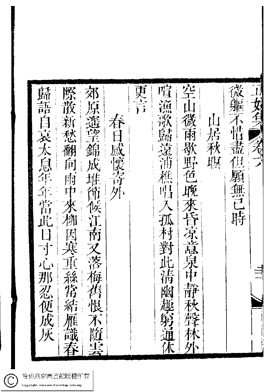 | 原書: 國朝閨秀正始集﹕二十卷﹐附錄﹕一卷﹐補遺﹕一卷﹐又附題詞﹕一卷(清惲珠輯) |