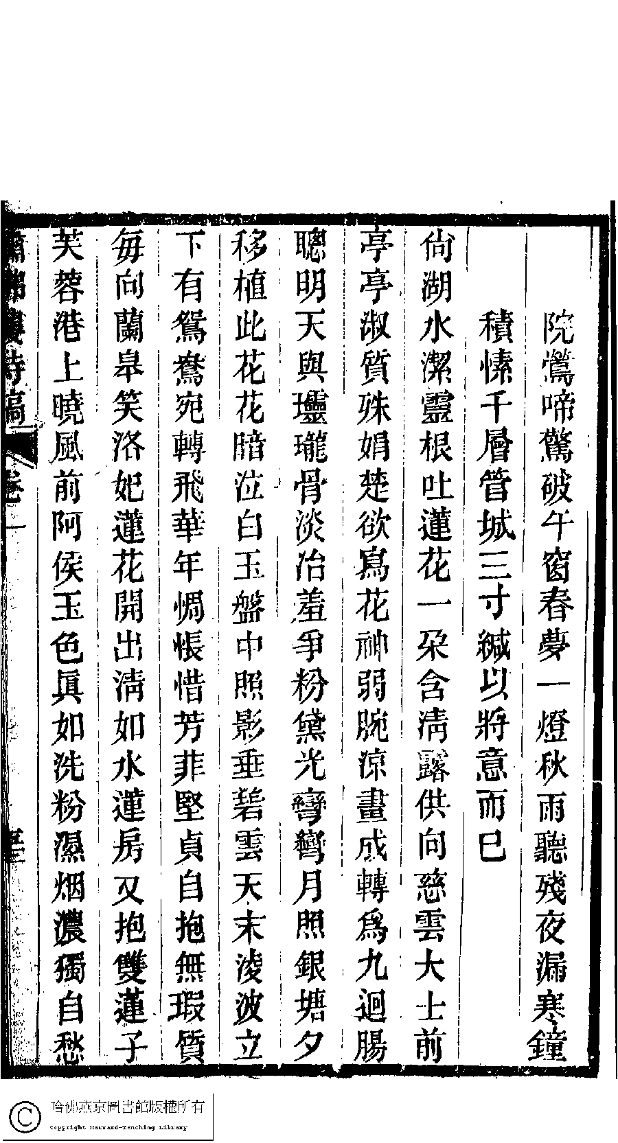 | (PRINT FRIENDLY VERSION) 繡佛樓詩稿﹕二卷(清錢守璞撰)。清同治八年(1869)刻本。 ![]() 頁碼 : 1.52b | 点 击 放 大 | 繡佛樓詩稿﹕二卷(清錢守璞撰)。清同治八年(1869)刻本。![]() 頁碼 : 1.52a | 点 击 放 大 | 繡佛樓詩稿﹕二卷(清錢守璞撰)。清同治八年(1869)刻本。![]() 頁碼 : 1.51b | 点 击 放 大 | 返回 |