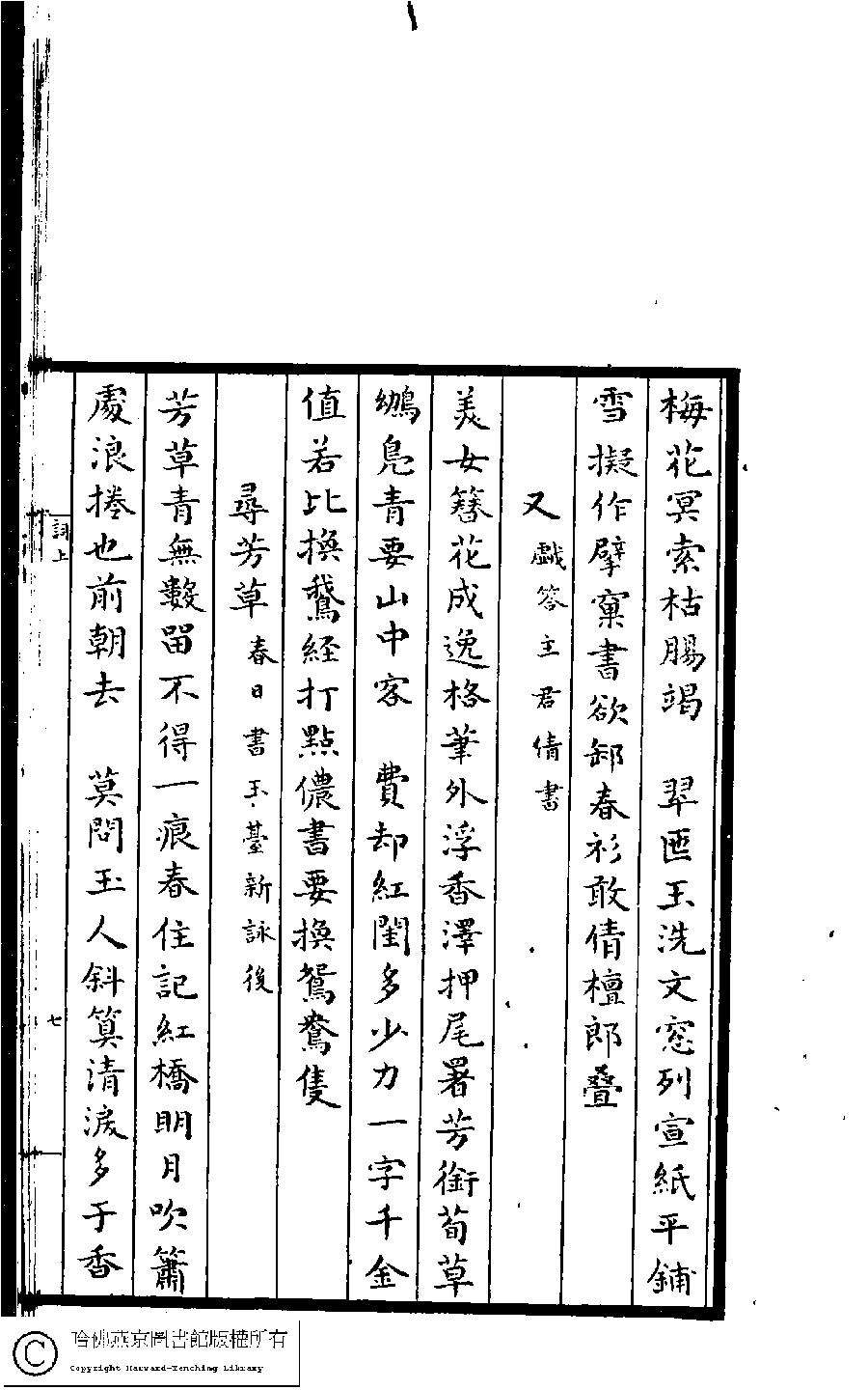 | (PRINT FRIENDLY VERSION) 春雨樓稾(清沈彩撰)。民國十三年(1924)影印手稿本 ![]() 頁碼 : 詞上.7b | 点 击 放 大 | 春雨樓稾(清沈彩撰)。民國十三年(1924)影印手稿本![]() 頁碼 : 詞上.7a | 点 击 放 大 | 返回 |