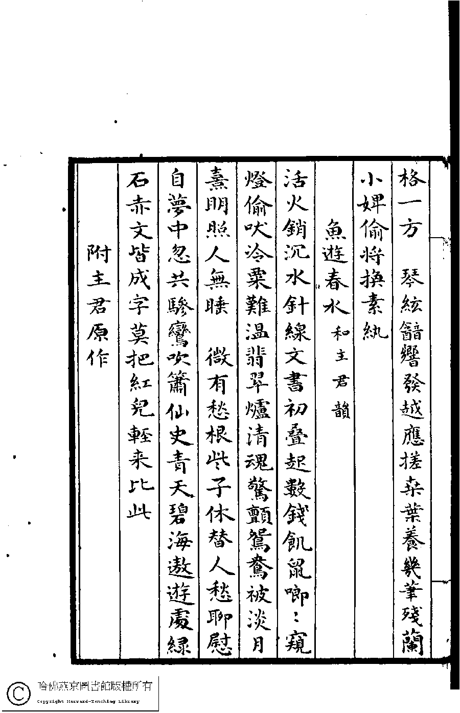 | (PRINT FRIENDLY VERSION) 春雨樓稾(清沈彩撰)。民國十三年(1924)影印手稿本 ![]() 頁碼 : 詞下.4a | 点 击 放 大 | 春雨樓稾(清沈彩撰)。民國十三年(1924)影印手稿本![]() 頁碼 : 詞下.3b | 点 击 放 大 | 返回 |