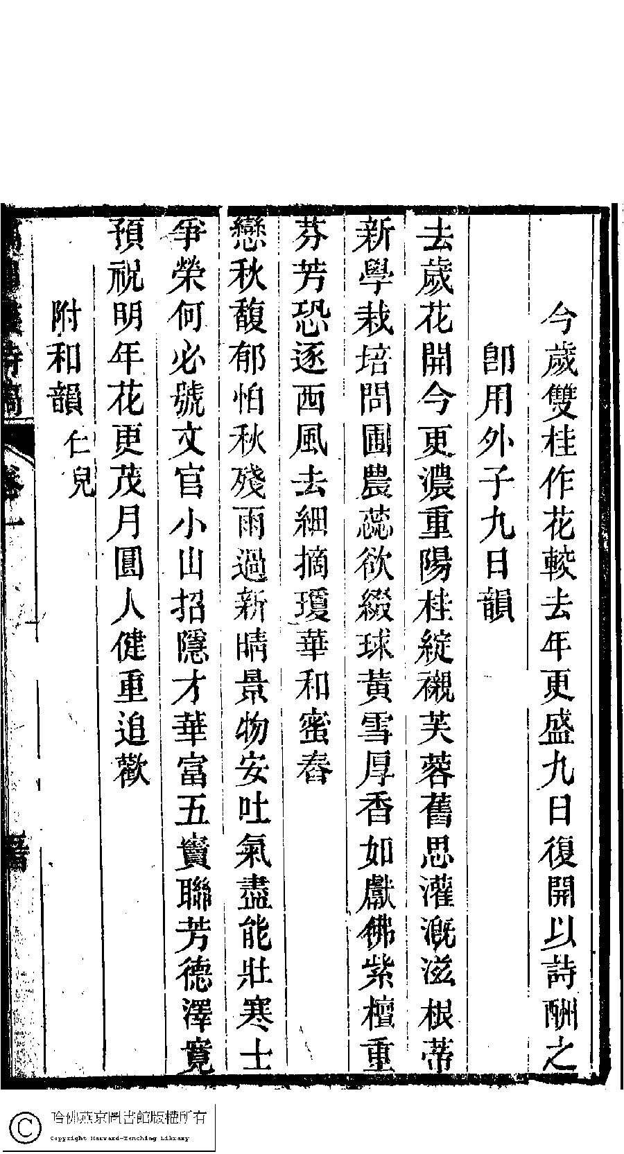 詩詞 [今歲雙桂作花較去年更盛九日復開以詩酬之即用外子九日韻(二首)]