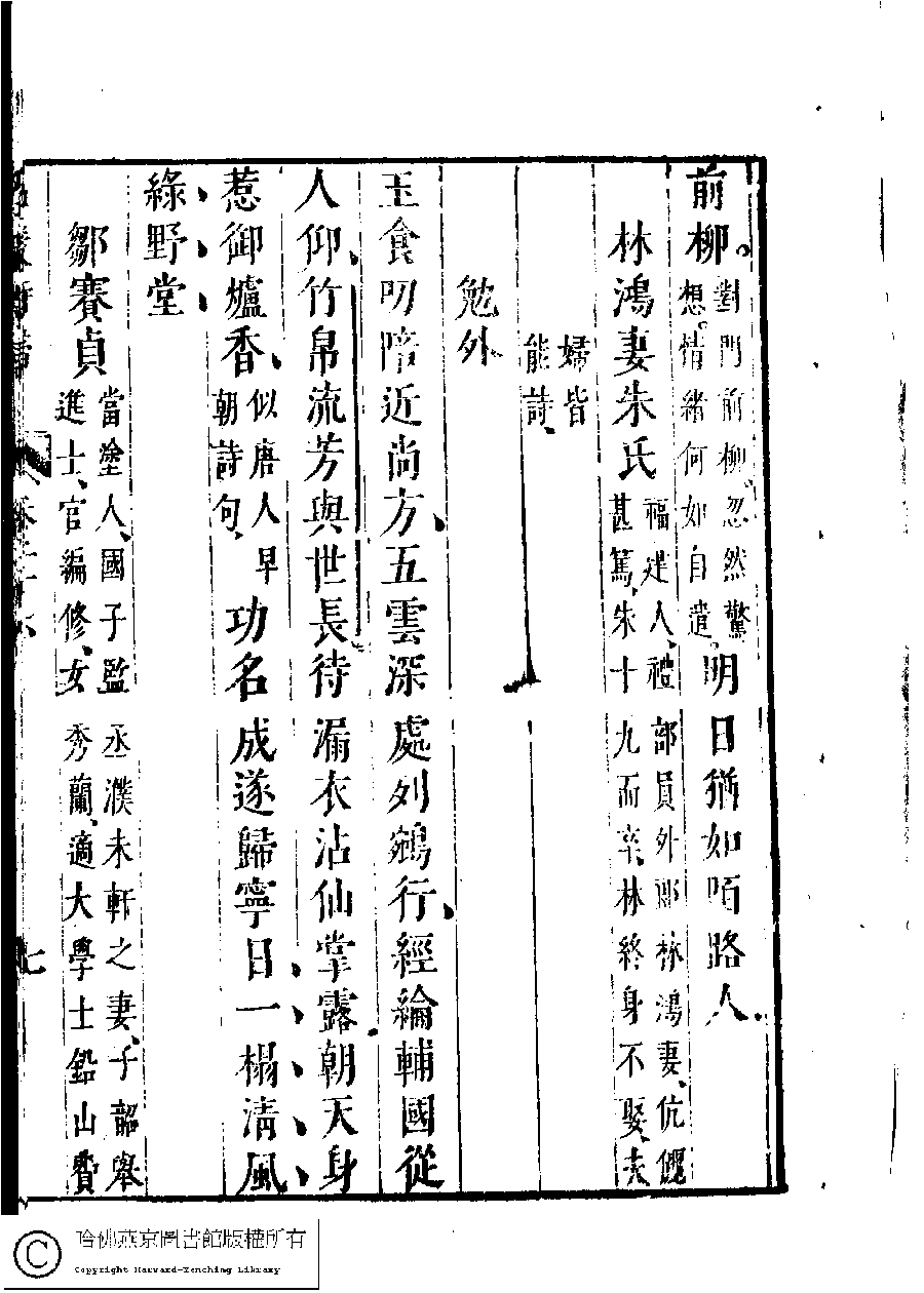 | (PRINT FRIENDLY VERSION) 名媛詩歸﹕三十六卷(鍾惺點次)。明末(1621-1644)刻本 ![]() 頁碼 : 26.7a | 点 击 放 大 | 返回 |