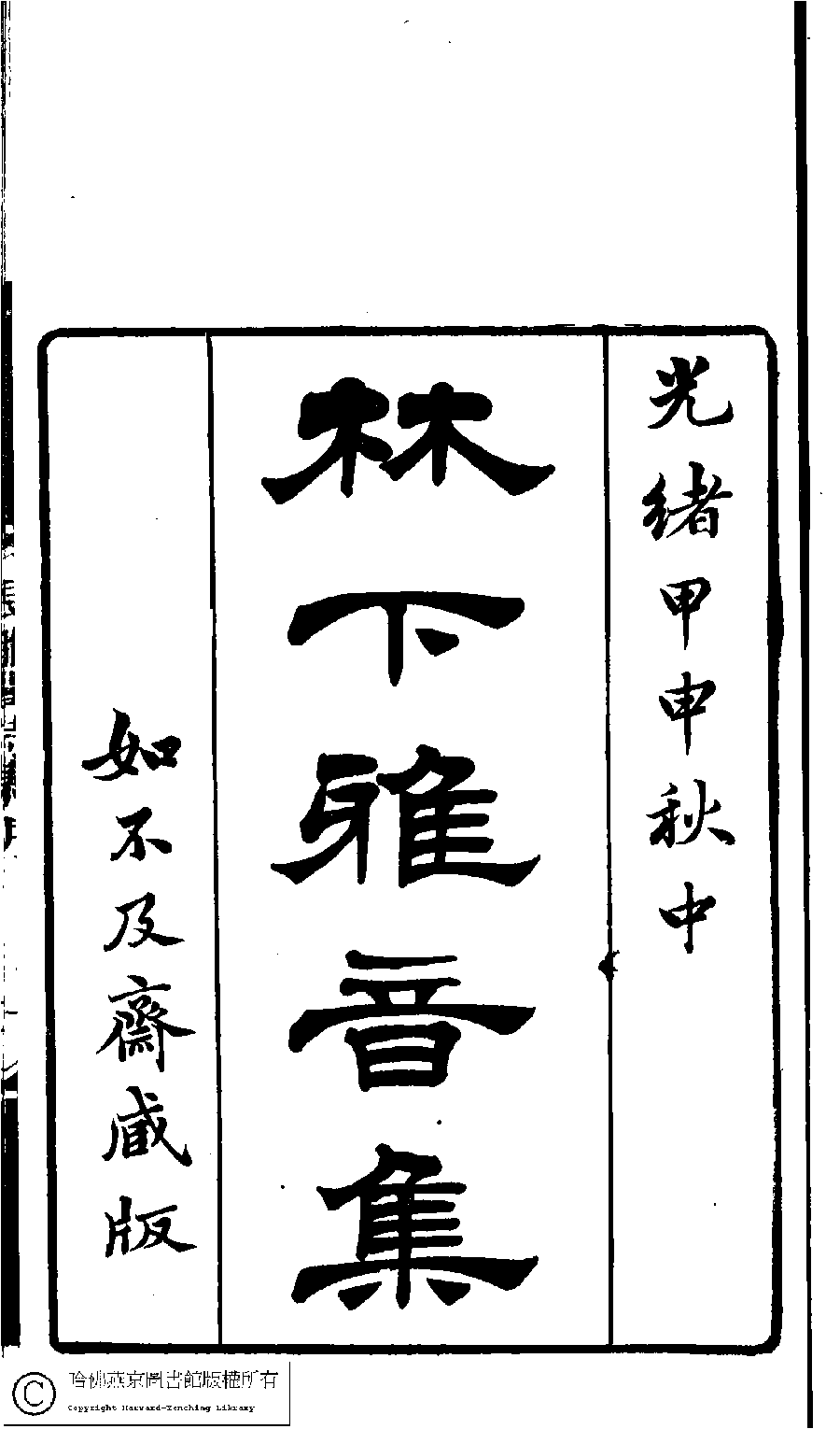 林下雅音集﹕五種(淸冒俊輯)。淸光緖十年(1884)刻本。