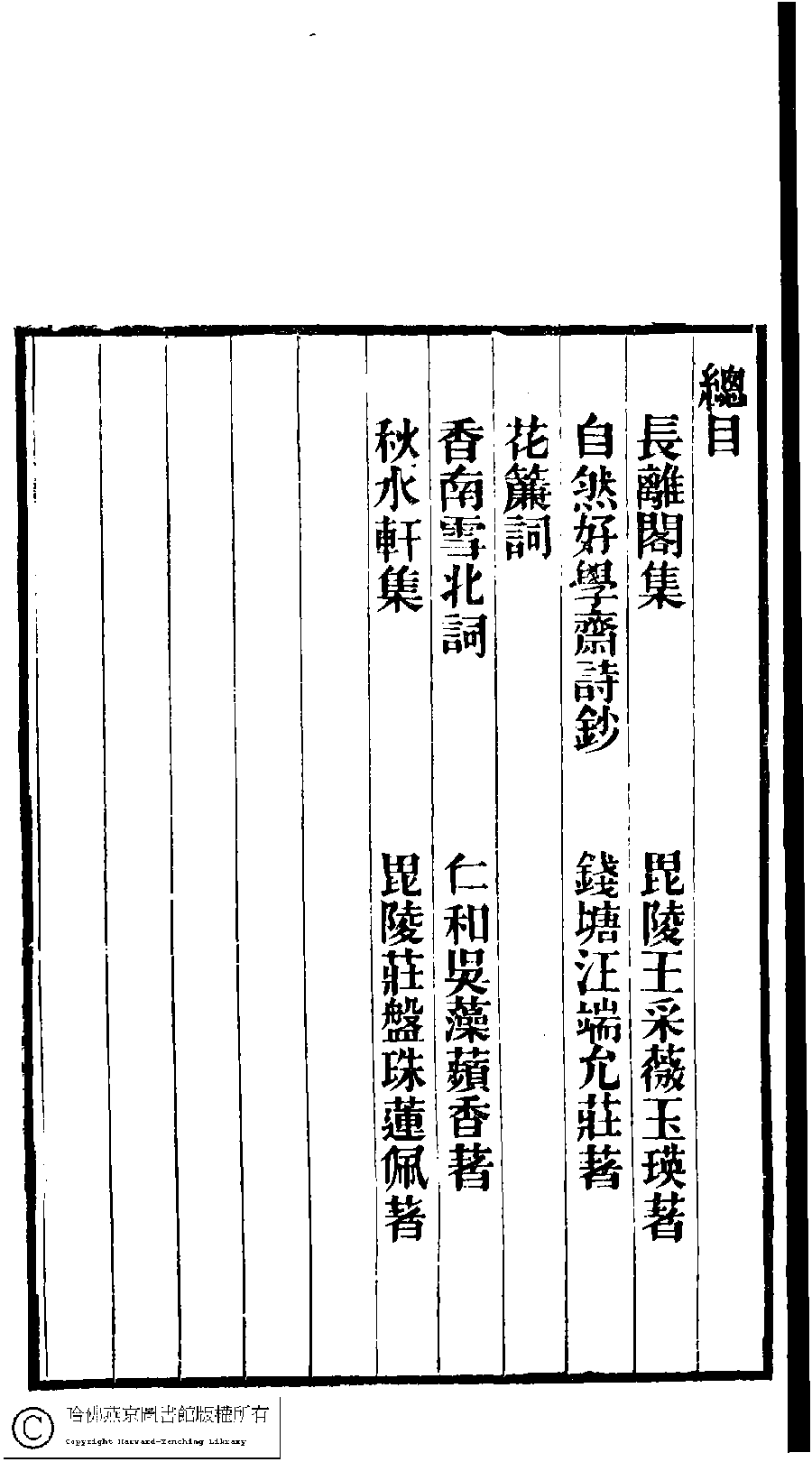 林下雅音集﹕五種(淸冒俊輯)。淸光緖十年(1884)刻本。
