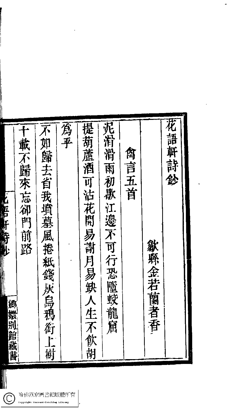 | 原書: 國朝閨閣詩鈔﹕一百種一百卷(清蔡殿齊輯): 花語軒詩鈔﹕一卷 |