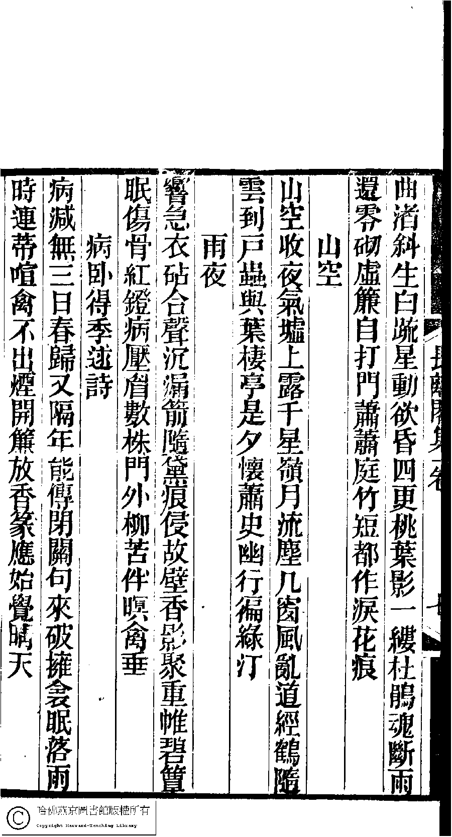 | (PRINT FRIENDLY VERSION) 林下雅音集﹕五種(淸冒俊輯) : 長離閣集: 一卷。淸光緖十年(1884)刻本。 ![]() 頁碼 : 7b | 点 击 放 大 | 返回 |