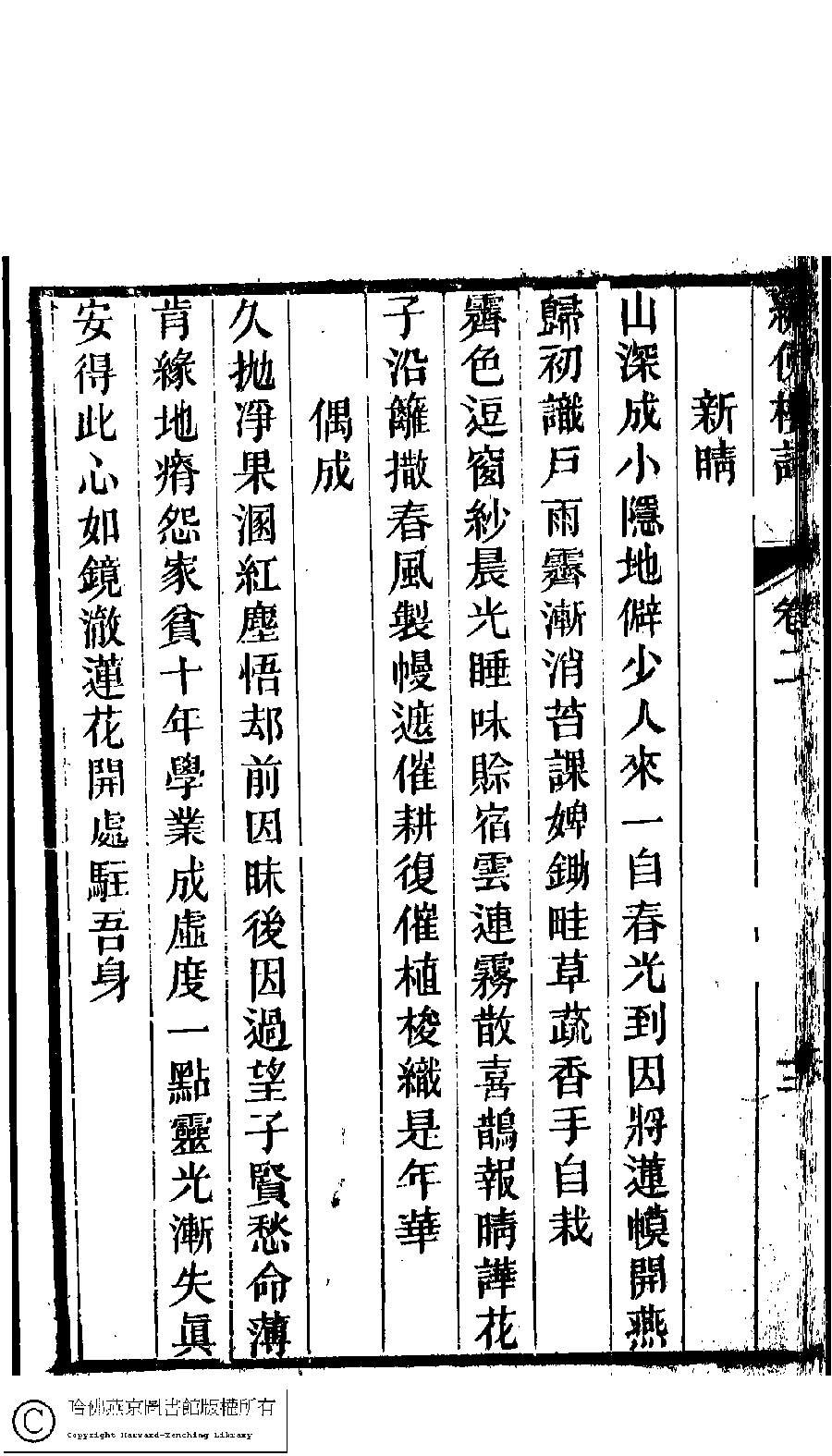 | (PRINT FRIENDLY VERSION) 繡佛樓詩稿﹕二卷(清錢守璞撰)。清同治八年(1869)刻本。 ![]() 頁碼 : 2.12b | 点 击 放 大 | 返回 |