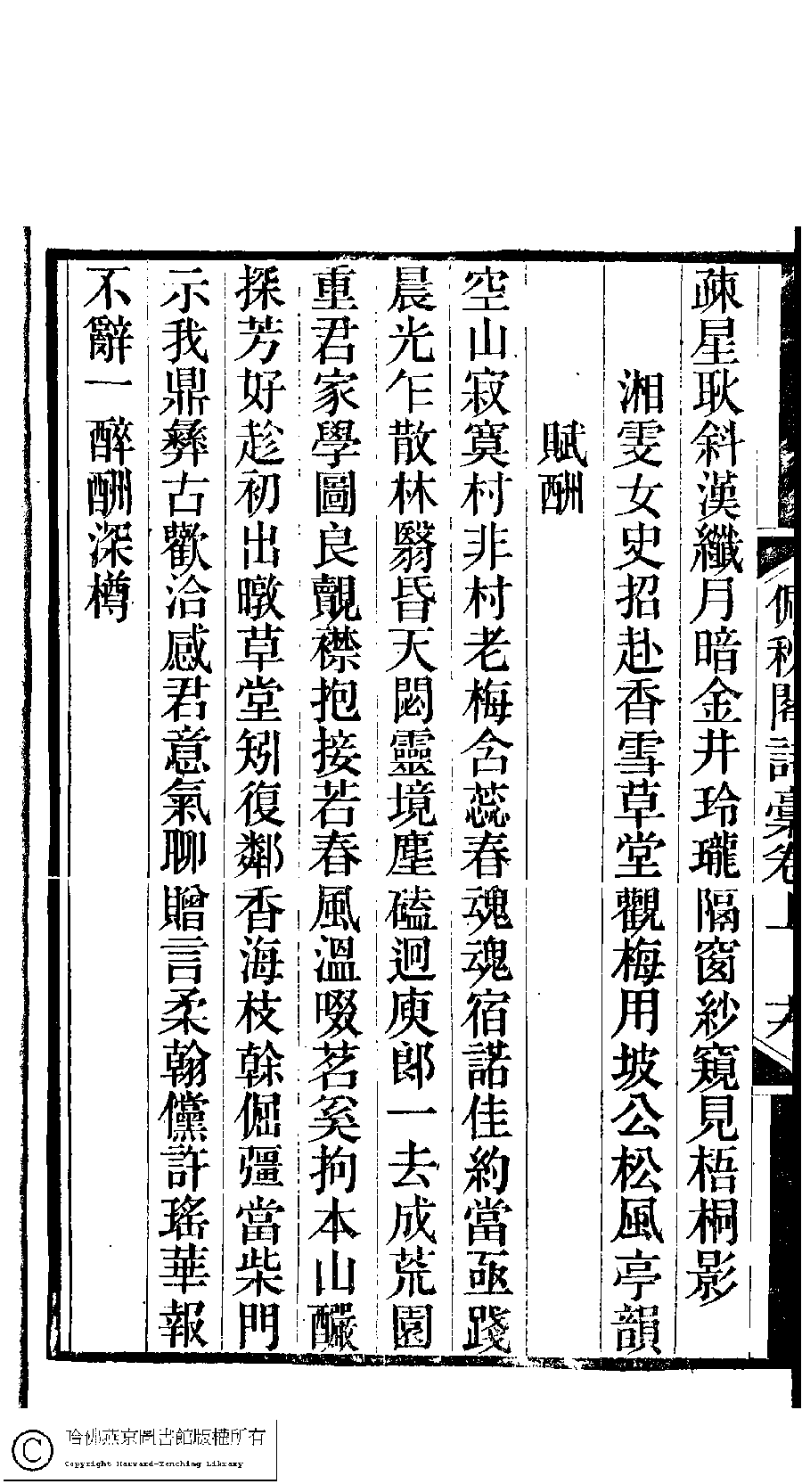 | (PRINT FRIENDLY VERSION) 佩秋閣遺稿﹕二卷﹐詞稿﹕一卷﹐文稿﹕一卷(清吳茝撰)。清光緒十四年(1888)刻本。 ![]() 頁碼 : 1.19b | 点 击 放 大 | 佩秋閣遺稿﹕二卷﹐詞稿﹕一卷﹐文稿﹕一卷(清吳茝撰)。清光緒十四年(1888)刻本。![]() 頁碼 : 1.19a | 点 击 放 大 | 返回 |
