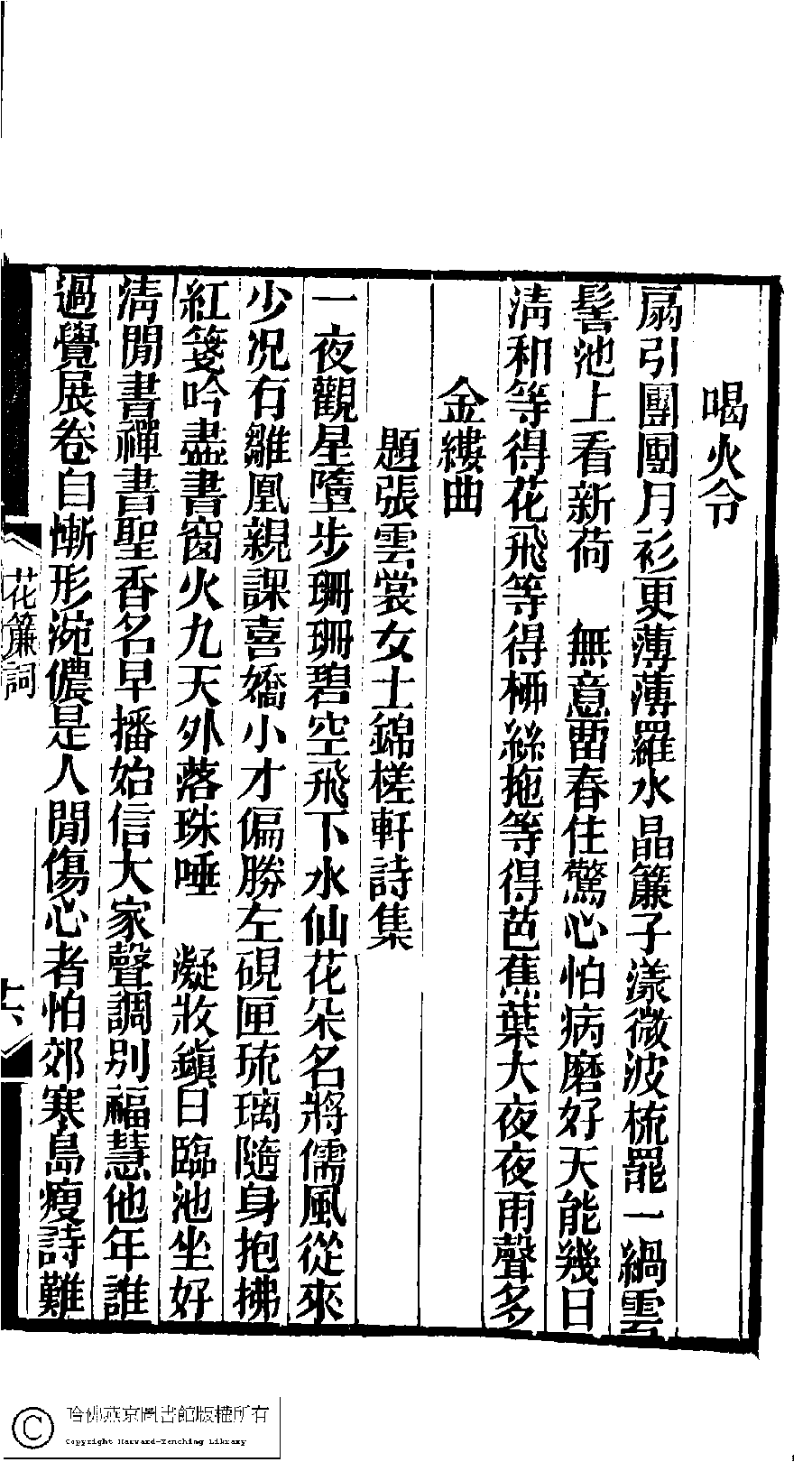 | 原書: 林下雅音集﹕五種(淸冒俊輯): 花簾詞: 一卷 |