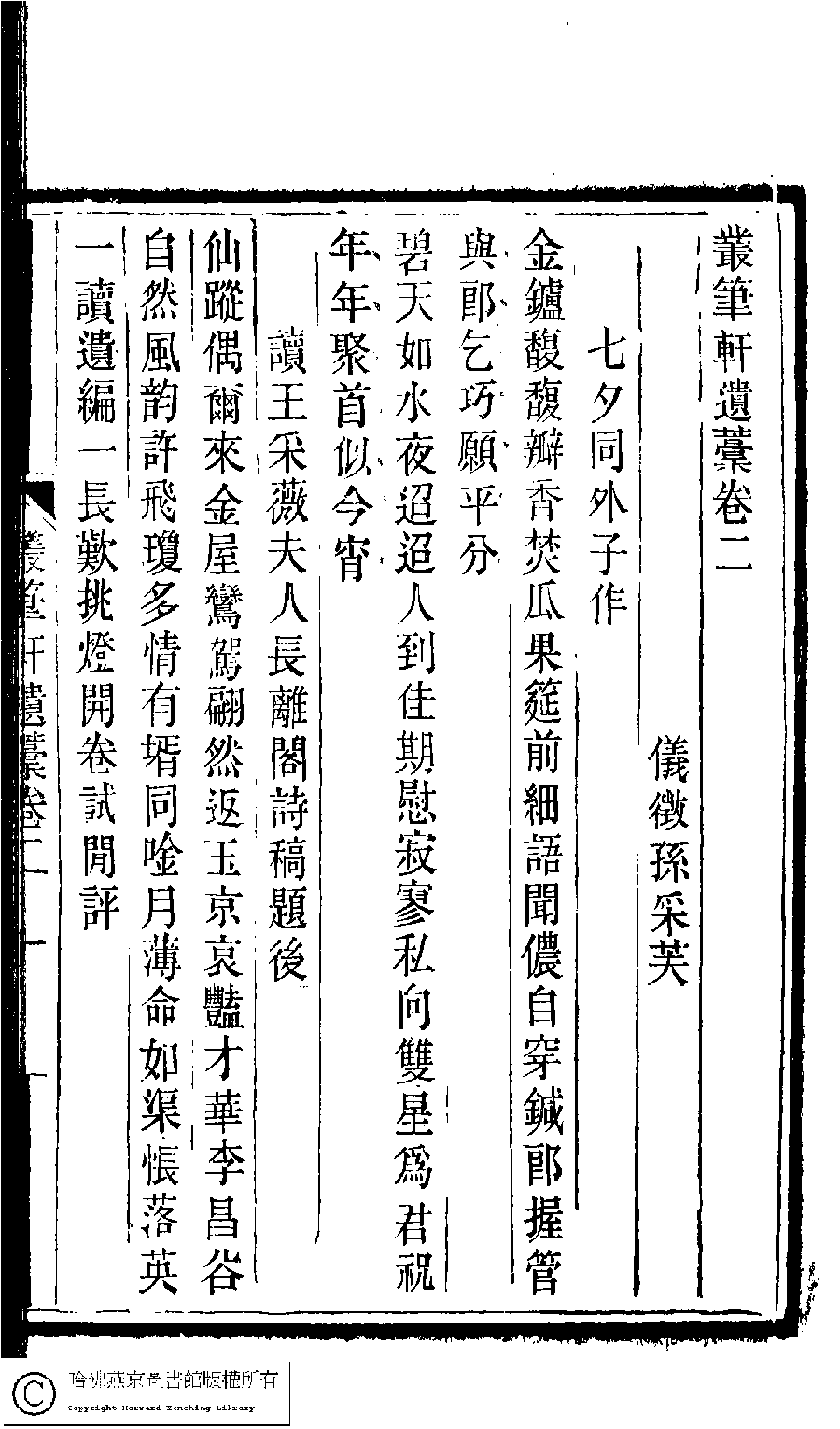 | 原書: 叢筆軒遺藁﹕三卷(清孫采芙撰) |